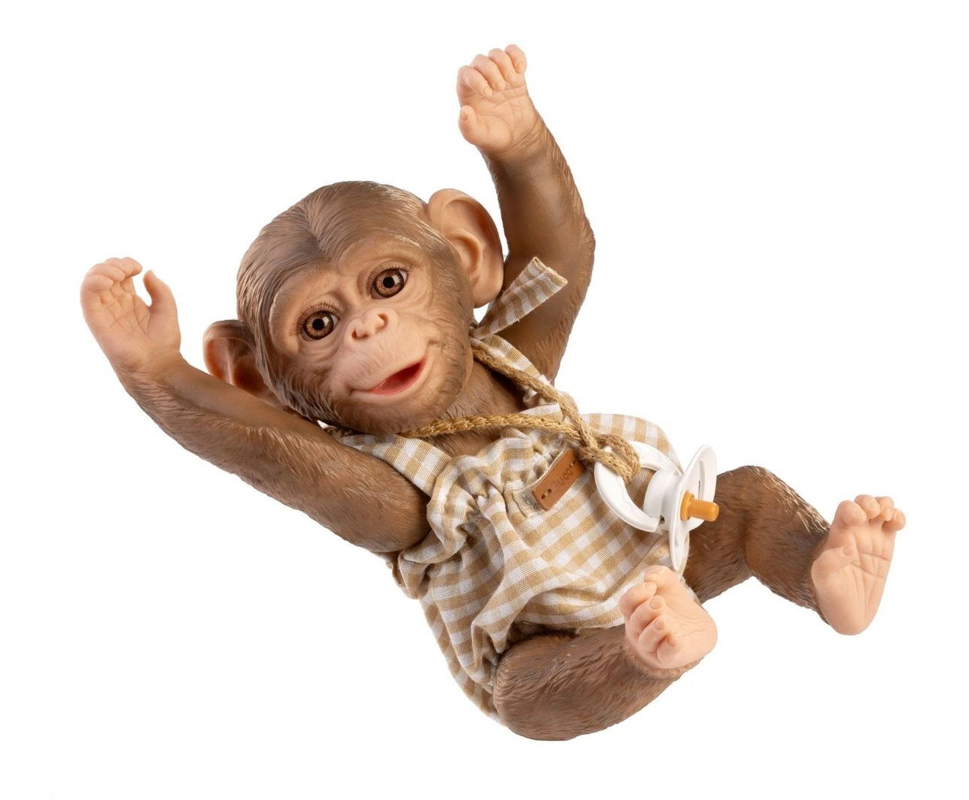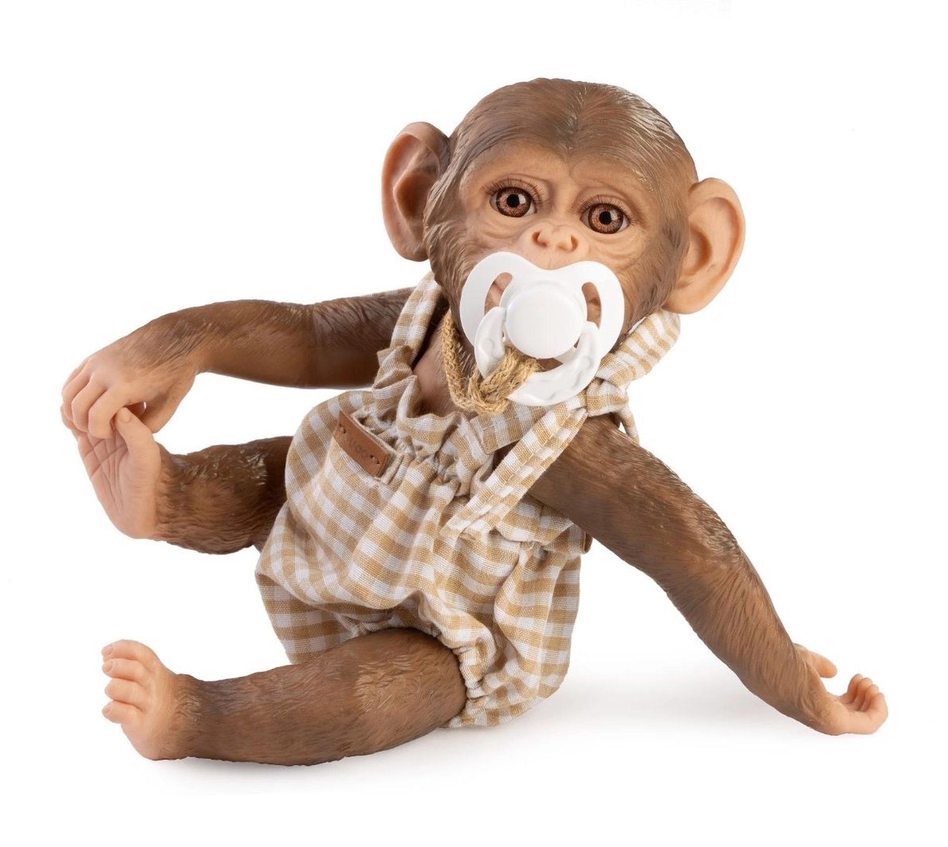 Palutiniet savu pērtiķēnu mazuli REBORN ar jaunu izskatu, izmantojot šo rūpīgi izstrādāto komplektu. Maigais rūtainais romperis ar regulējamām lencēm un elastīgām apmalēm nodrošina ērtu ģērbšanos un patīkamu valkāšanu. Komplektā ir arī stilīgs knupītis uz aukliņas, kas papildina mīlīgo izskatu un veicina fantāzijas spēles.