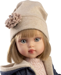 Stilīgs 5 daļu apģērbu komplekts lellītei PENELOPE 34 cm ietver kleitu, cepuri, mētelīti, aksesuārus un ādas šņorējamas kurpītes. Roku darbs Spānijā no kvalitatīviem materiāliem, ideāli piemērots radošai pārģērbšanai un bērnu iztēles attīstīšanai no 3 gadu vecuma.
