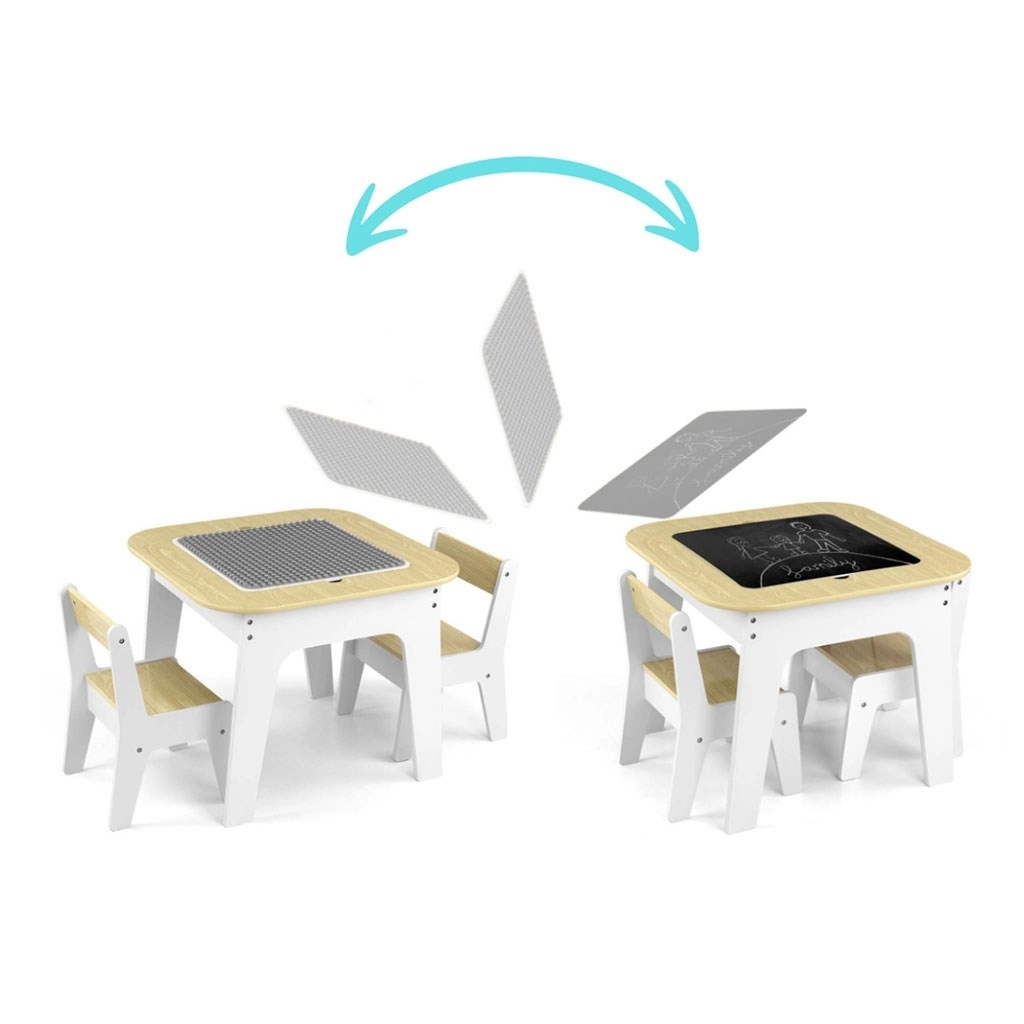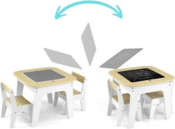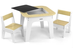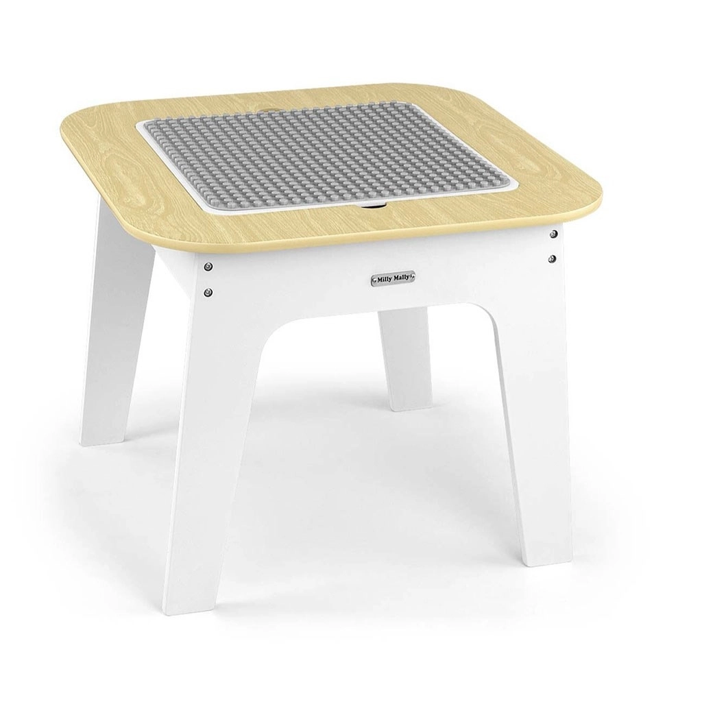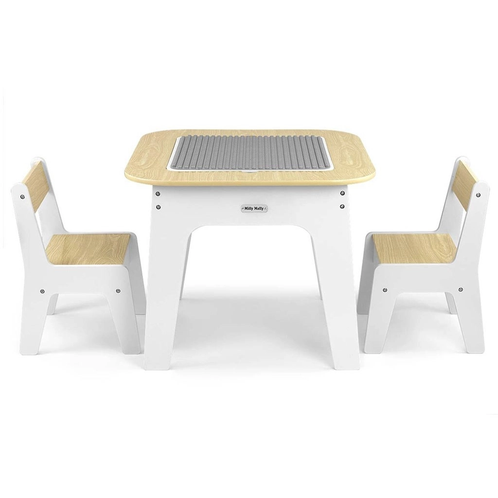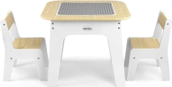 Praktiska bērnu komplekts MILLY MALLY Olaf Blocks – galds un divi krēsli – piedāvā divpusēju virsmu gan celtniecības klucīšiem, gan zīmēšanai, lielu glabāšanas nodalījumu zem virsmas un drošu, noapaļotu konstrukciju no izturīga MDF. Ideāli piemērots bērniem no 3 līdz 6 gadiem bērnistabai vai rotaļu stūrītim.