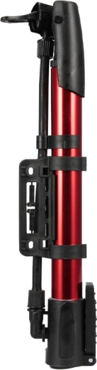 Praktisks turētājs ar elastīgām siksnām ļauj droši piestiprināt pumpi pie rāmja, lai tā vienmēr būtu pa rokai ceļā.