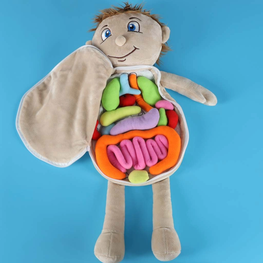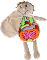 Šī izglītojošā mīkstā lelle ar atveramu vēderu palīdz bērniem saprast cilvēka anatomijas pamatus rotaļīgā un uzskatāmā veidā. Vēders viegli atverams ar drošu rāvējslēdzēju, atklājot krāsainus, mīkstus orgānus, kas ar līplentu piestiprināti vienkāršai izņemšanai un atpakaļievietošanai. Lelle ir izgatavota no patīkama poliestera un papildināta ar viegli noņemamu apģērbu, kas aizmugurē sasienams.