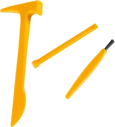Vieglie plastmasas instrumenti ērti ieguļ bērna rokā un nodrošina komfortablu un drošu atskaldīšanu un atradumu tīrīšanu.