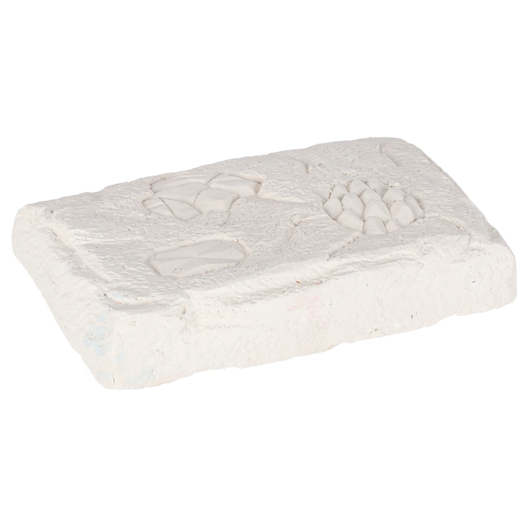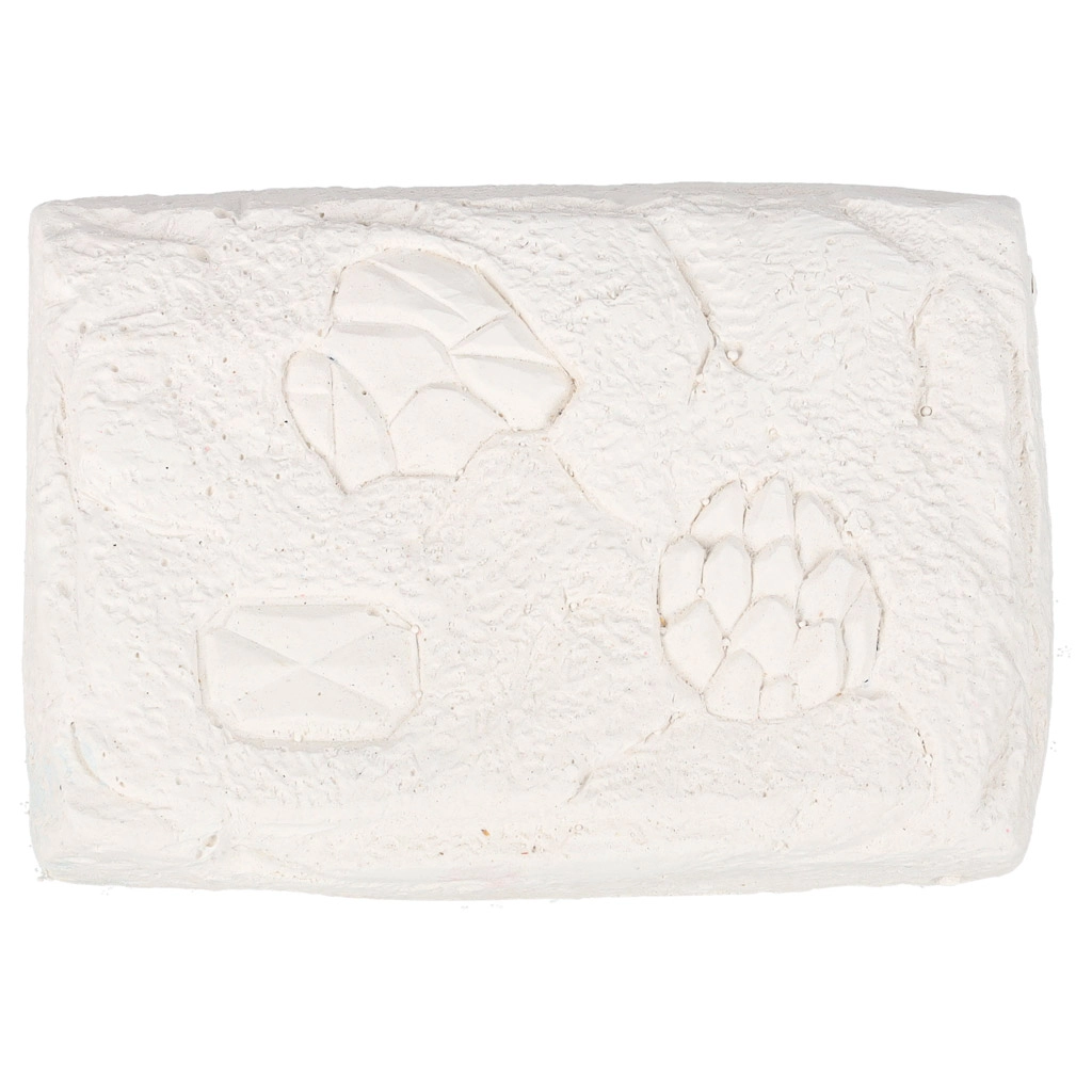 Ģipša bloks slēpj krāsainus akmentiņus un gliemežvākus. Bērni tos pakāpeniski atklāj ar kaltu, āmuriņu un otiņu – gluži kā mazie arheologi.