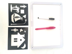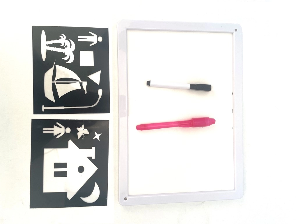 Zīmēšanas planšete, kas spīd tumsā A4, ir lieliska dāvana mazajiem māksliniekiem. Ar speciālo spīdošo pildspalvu bērni veido gaismas rakstus, kas pēc gaismas izslēgšanas mirdz tumsā un pamazām izzūd, tāpēc var atkal un atkal radīt no jauna. Otrā puse kalpo kā dzēšama baltā tāfele klasiskai zīmēšanai.