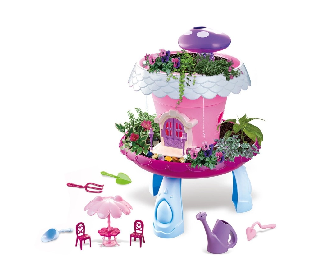 Interaktīvais bērnu komplekts “Mājiņa ar dārziņu” apvieno izklaidi un mācīšanos. Bērni no 3 gadu vecuma var izmēģināt rūpes par augiem, attīstīt pacietību un sīko motoriku. Komplektā ir rozā mājiņa ar efektīgu jumtu, laistīšanas sūklītis, puķu podi, sēklas, instrumenti, kā arī gaismas un muzikālie efekti. Viegla audzēšanas uzsākšana, bagātīgs piederumu komplekts un interaktīvas funkcijas nodrošina stundām ilgu radošu spēli.