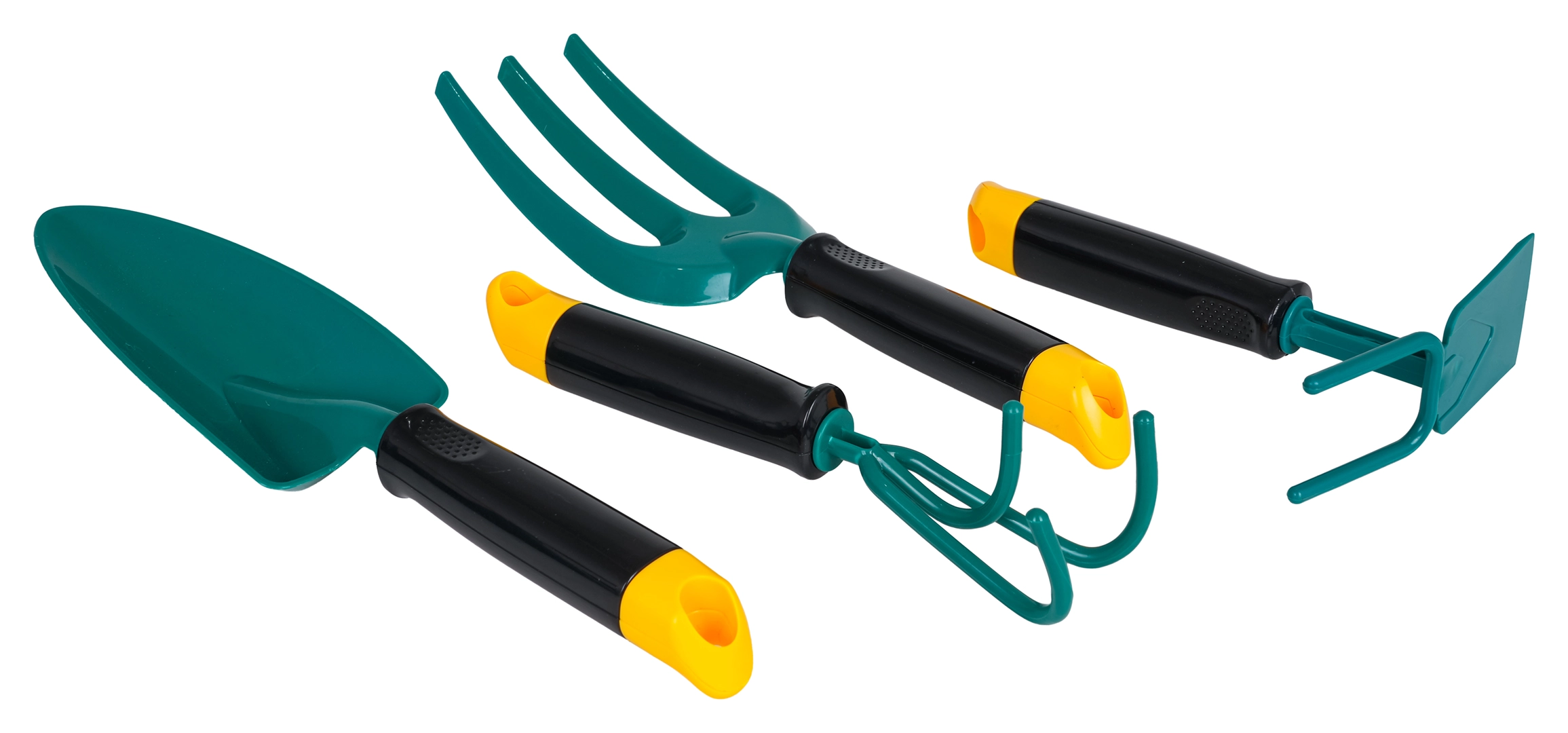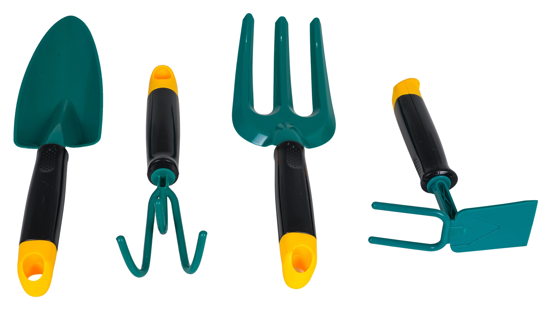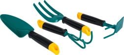 Lāpstiņai, grābeklim, kultivatoram un moticiņai ir ergonomiski, neslīdoši rokturi un gludas malas drošai lietošanai mazajās plaukstiņās.