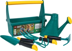 Šis bērnu dārzkopības komplekts ir veidots, īpašu uzmanību pievēršot drošībai, izturībai un jautrībai. Reālistiski instrumenti ar ergonomiskiem tvērieniem palīdz bērniem attīstīt sīko motoriku, mīlestību pret dabu un atbildību, rūpējoties par augiem. Pateicoties pārnēsājamai somai/kastei, mazajiem dārzniekiem viss vienmēr ir pa rokai.