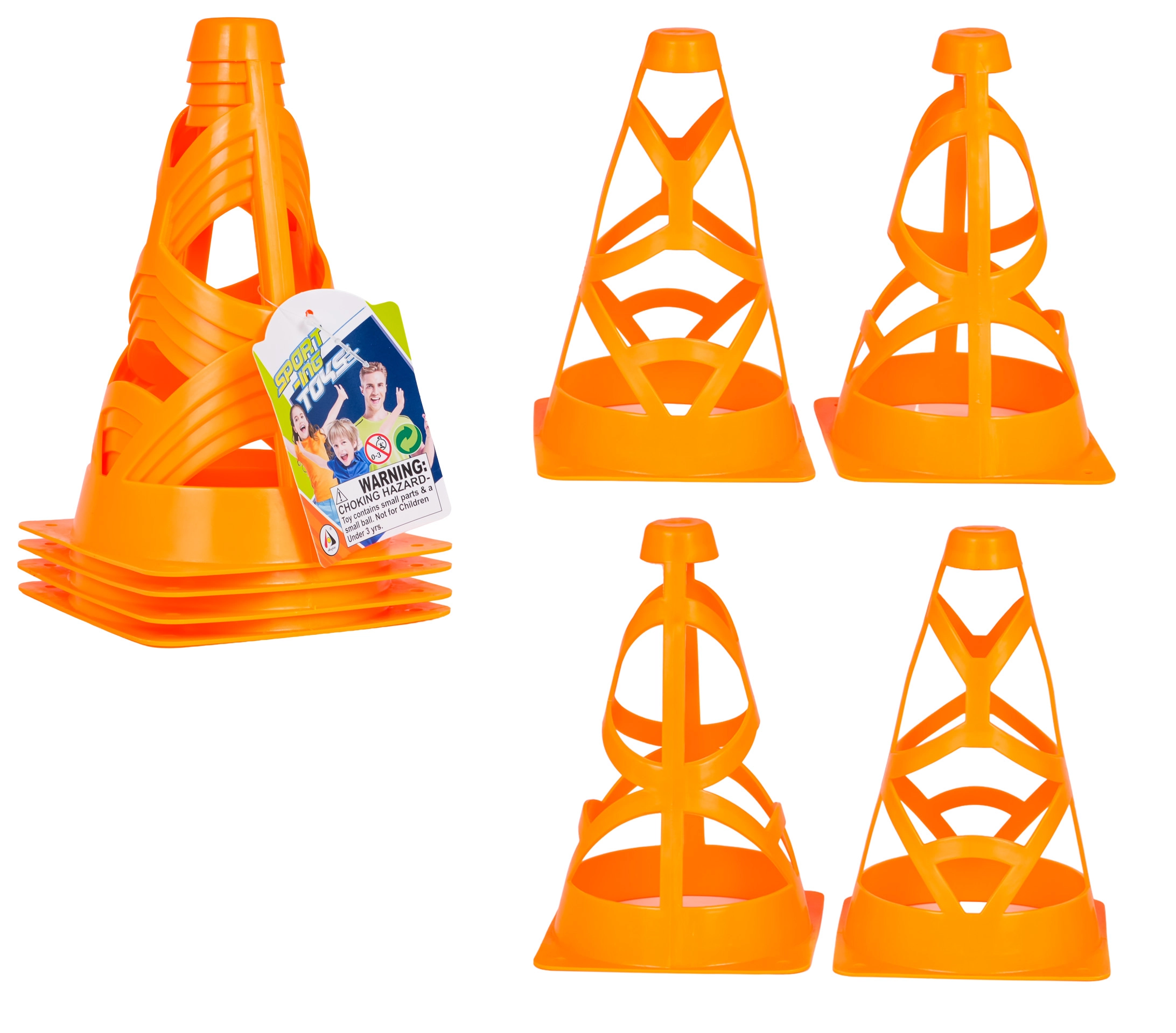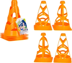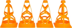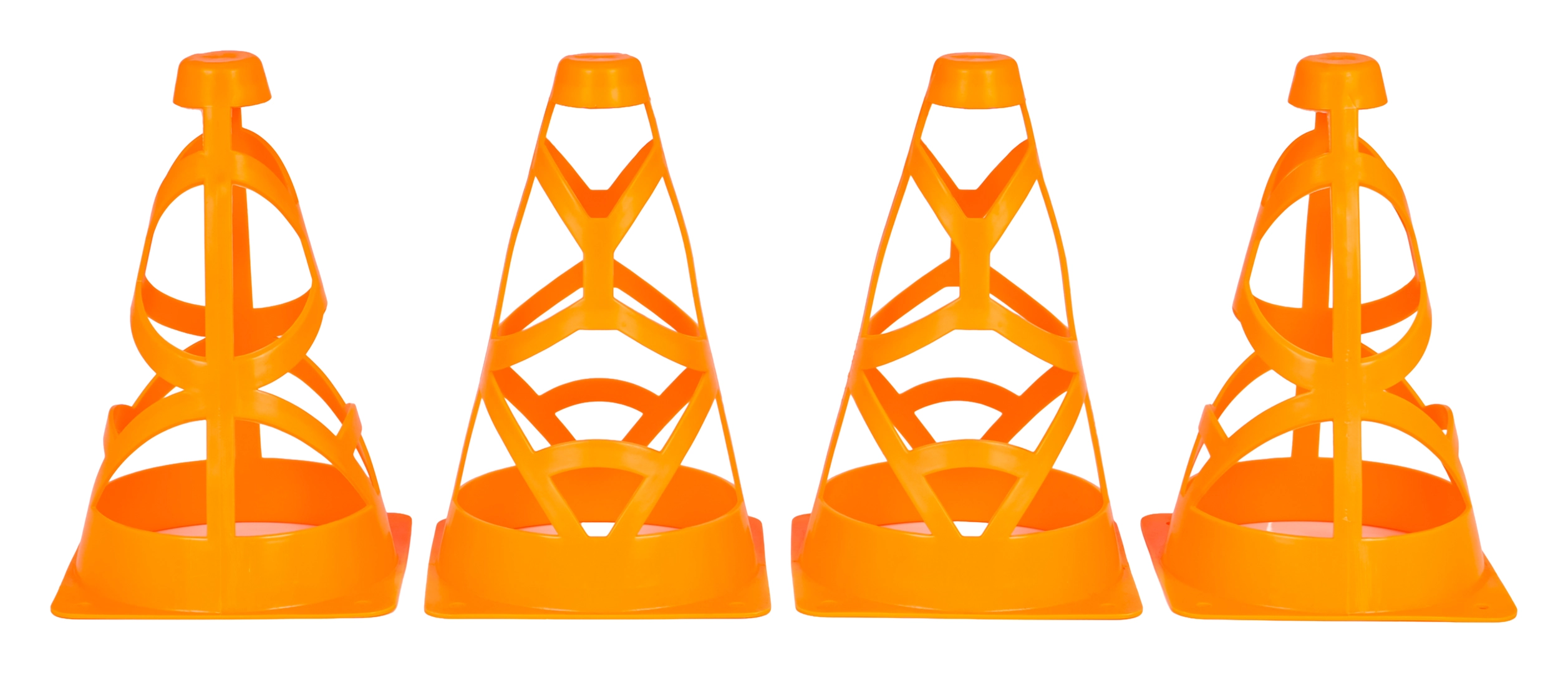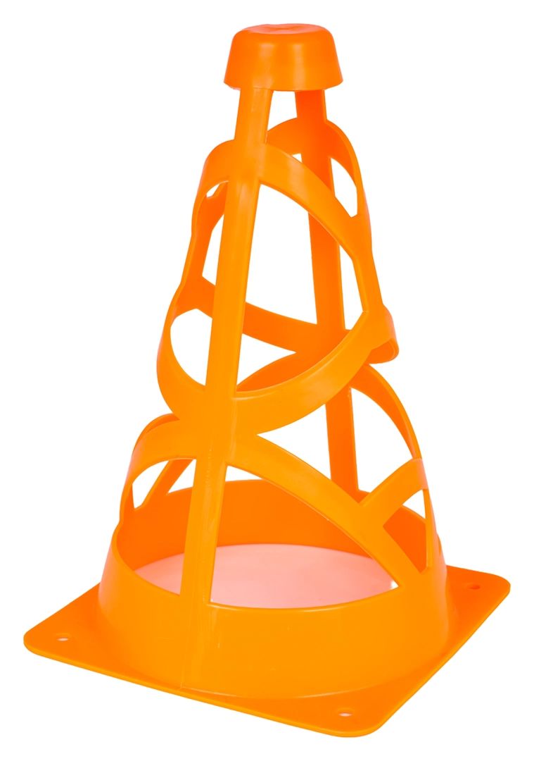 Universāli treniņu konusi koši oranžā krāsā palīdzēs iezīmēt trases, zonas un šķēršļus spēlēs un sportā. Pateicoties vieglajai plastmasas konstrukcijai, tie ir ērti pārnēsājami, bet saliekamā forma taupa vietu glabājot. Atvērtā “režģa” struktūra un atveres pamatnes stūros ļauj konusus droši nostiprināt un samazina vēja pretestību.