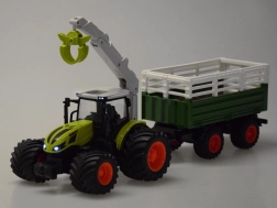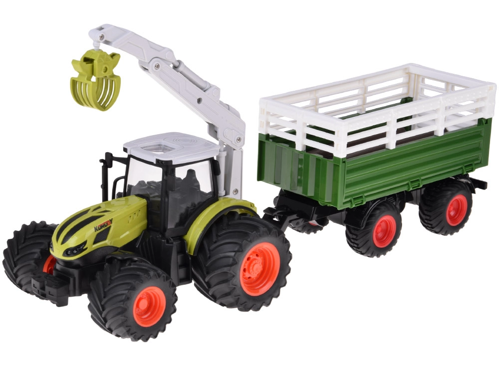2,4 GHz pults nodrošina stabilu vadību bez traucējumiem, ir DEMO režīms un iespēja ieslēgt/izslēgt gaismas. Piekabe ir atvienojama, tai ir izceļama kravas kaste un atverami sānu borti un aizmugurējais borts vienkāršai iekraušanai. Komplektā viss nepieciešamais, tostarp uzlādējams akumulators un USB kabelis – atliek ievietot baterijas pultī un doties uz fermu.