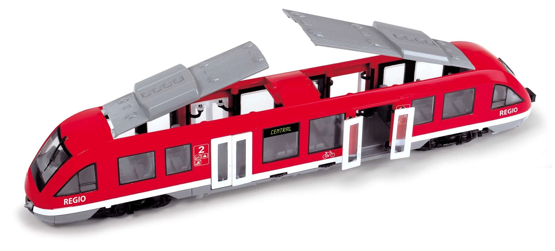 Reālistiskais sarkanais pilsētas vilciens REGIO no zīmola DICKIE TOYS sajūsminās mazos dzelzceļa cienītājus. Tas piedāvā atveramas durvis, ko darbina ar grozāmu ritenīti, brīvi griežamus riteņus vienmērīgai kustībai pa līdzenu virsmu un detalizētu interjeru ar sēdvietām un mašīnista kabīni. Ideāla rotaļlieta bērniem no 3 gadu vecuma ar uzsvaru uz reālistisku izpildījumu un izturību.