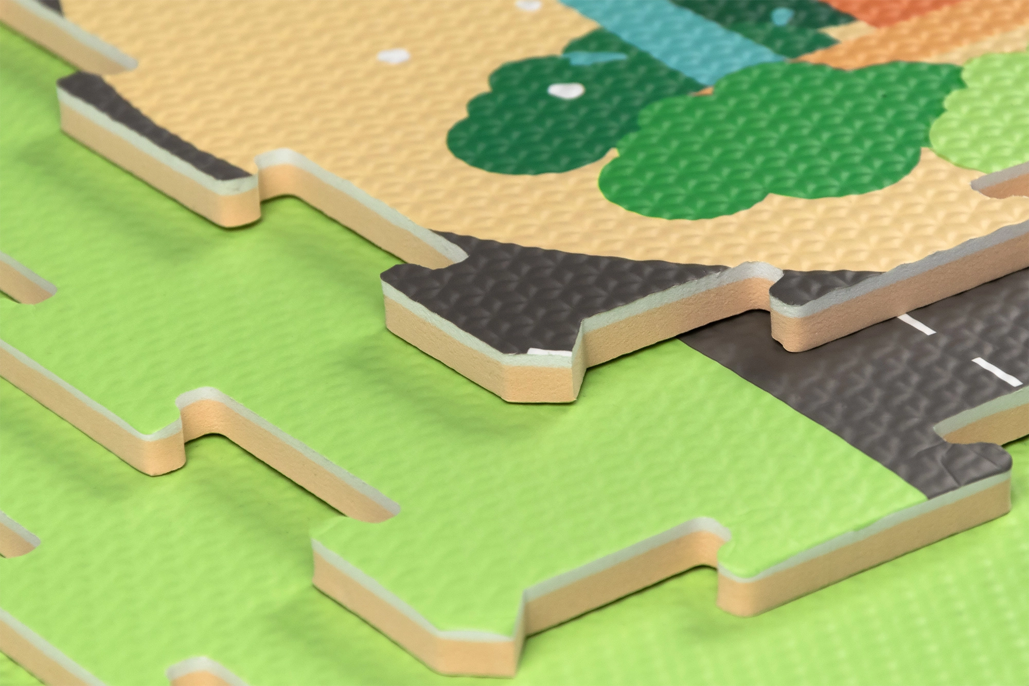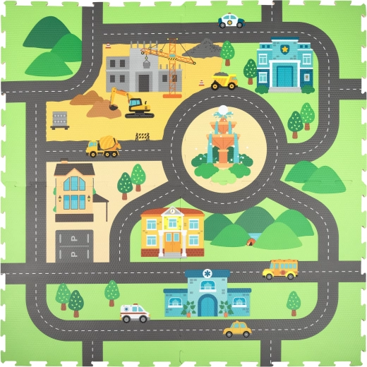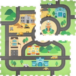 Atklājiet jautru un drošu HUMBI putu paklāju ar pilsētas ielu motīvu. Komplektu veido 4 lielas daļas, kas kopā veido aptuveni 120 × 120 cm lielu laukumu un nodrošina mīkstu, izolējošu un pretizslīdes virsmu rotaļām. Bērni var salikt savu mazpilsētu un ceļus, attīstīt radošumu un smalko motoriku. Izgatavots no izturīgām EVA putām bez ftalātiem, formamīda, BPA un PVC.