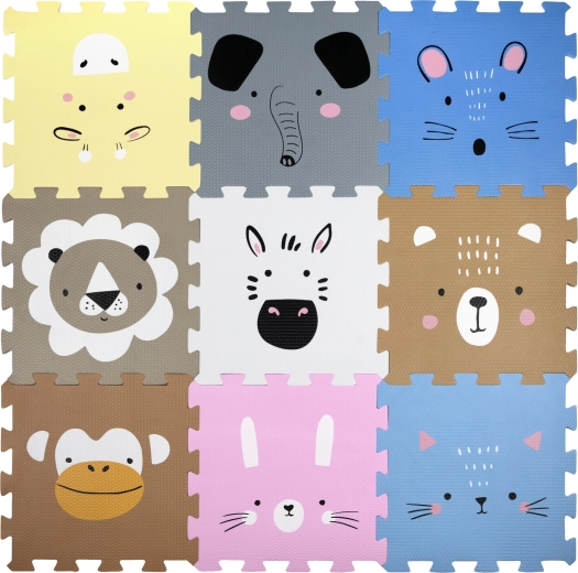Izveidojiet bērniem drošu un rotaļīgu vietu ar HUMBI putu paklājiņu. Deviņas lielas mīklas plāksnes ar mīlīgiem dzīvnieciņiem veido mīkstu, pretizslīdēšanas un siltumizolējošu virsmu 120 × 120 cm izmērā. Kvalitatīvas EVA putas bez ftalātiem, formamīda, BPA un PVC absorbē triecienus un pasargā no aukstas grīdas.