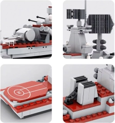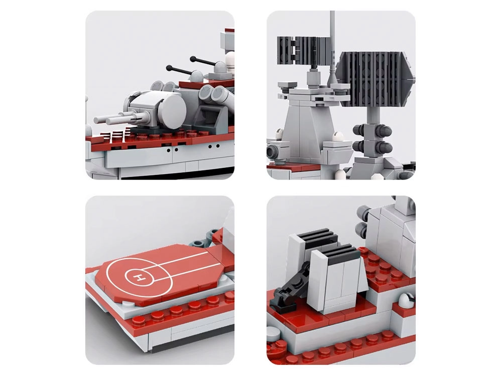 Šis konstruktors sniedz stundām ilgu izklaidi salikšanas laikā un iespaidīgu rezultātu plauktā. Pateicoties cieši savienojamām detaļām, izveidosiet stabilu konstrukciju ar bagātīgu aprīkojumu – no radariem un lielgabalu torņiem līdz klāja virsbūvēm. Reālistisku izskatu pastiprina komplektā iekļautās uzlīmes, kas piešķir gala modelim autentisku noskaņu.