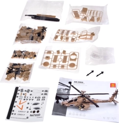 Šis tehniskais būvkomplekts, iedvesmots no leģendārā AH‑64, piedāvā detalizētu modeli ar raksturīgo korpusa formu, piekārto bruņojumu un efektīgu “shark mouth” stila uzlīmi. Griežamais galvenais un astes rotors, kā arī caurspīdīgais kabīnes pārsegs izceļ reālistisku izskatu un funkcionalitāti gan izstādīšanai, gan dinamiskām ainām.