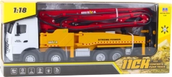 Reālistiska RC betona maisītāja mašīna ar sūkni HUINA mērogā 1:18 piedāvā lielisku pieredzi celtniecības tehnikas cienītājiem. Tā nodrošina 11 kanālus pilnīgai kontrolei, 630° grozāmu platformu, izvelkamu strēli līdz 120 cm, stabilizējošus balstus un ūdens izsmidzināšanas funkciju. Pateicoties 2.4 GHz vadībai, gaismas un skaņas efektiem un jaudīgam akumulatoram, izklaide ir reālistiska un ilgstoša.