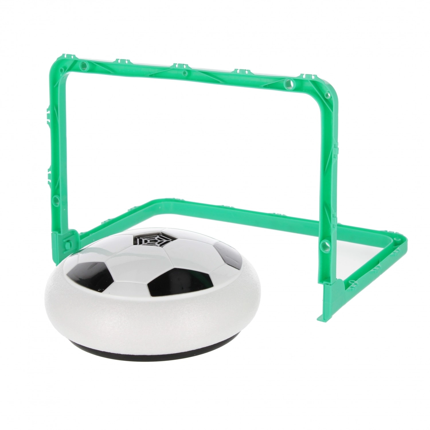 Peldošā futbola komplekts ir lieliska izvēle mājas futbola mačiem bez mēbeļu bojājumu riska. Bumba viegli paceļas un slīd pa gludām grīdām, mīkstā putu mala aizsargā sienas un mēbeles un nodrošina klusu, drošu spēli. Komplektā divi plastmasas vārti ar izmēriem 30 × 20 × 20 cm vēl lielākai sacensībai.