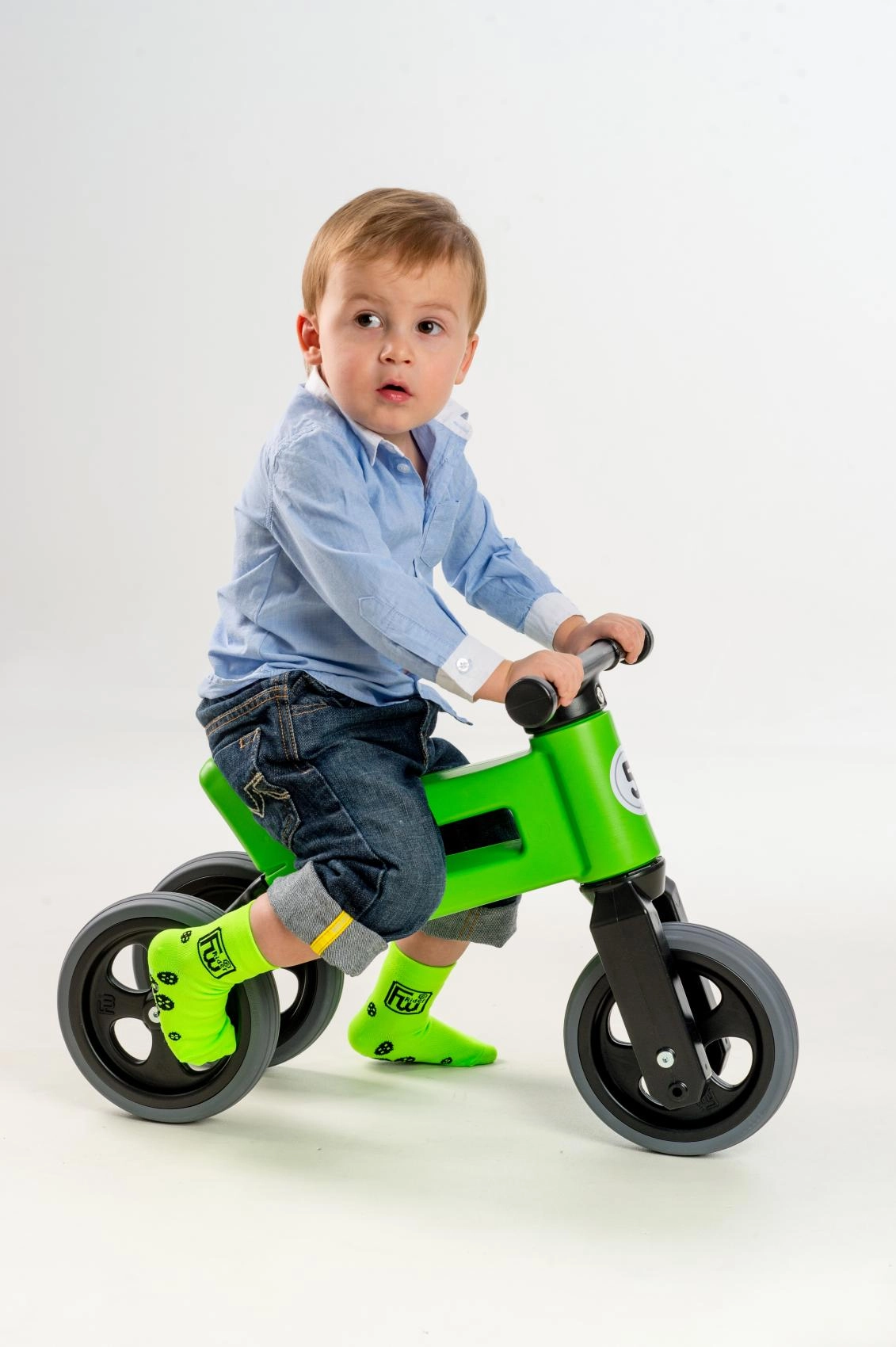 Viegls un stabils 2‑in‑1 līdzsvara ritenis bērniem no 18 mēnešu vecuma, kas aug līdz ar bērnu. Viegli pārveidojams no trīsriteņa uz divriteni, iespējams iestatīt divus sēdekļa augstumus (28/30 cm), un, pateicoties klusajām, neslīdošajām riepām, braukšana ir droša un ērta gan mājās, gan ārā. Ražots Čehijā no izturīga, veselībai nekaitīga plastmasas.
