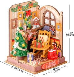Šis detalizētais DIY komplekts ienes Ziemassvētku valdzinājumu jebkurā interjerā. Pie kamīna karājas kalendārs ar datumu 25. decembris, apkārt mirdz vītnes un vainags, deg svece, bet zem eglītes gaida dāvanas. Ainu papildina šūpuļkrēsls vectētiņam, fotogrāfijas uz sienām, saldumi un kaķis, kas atpūšas pie loga.