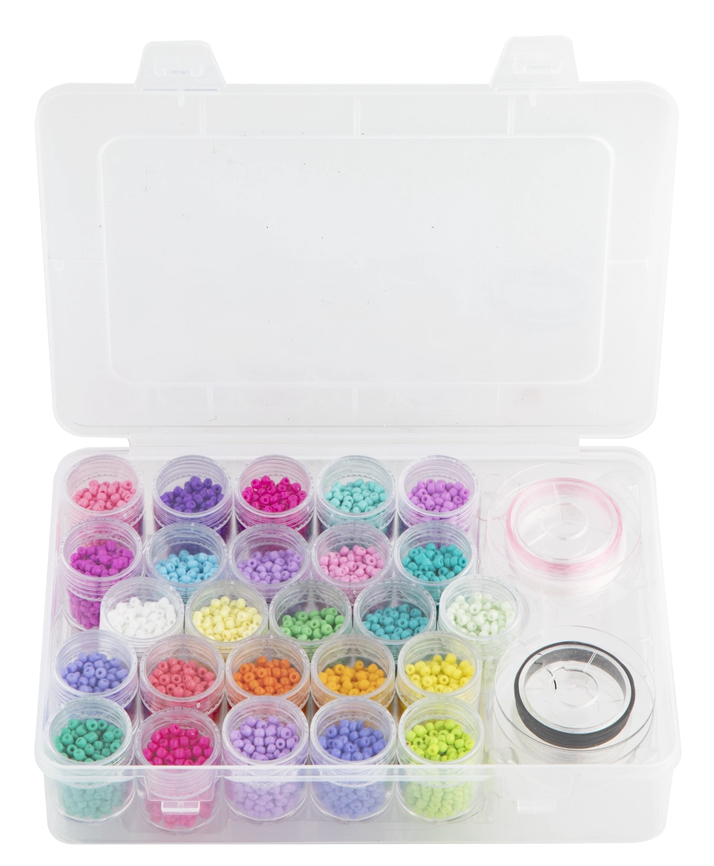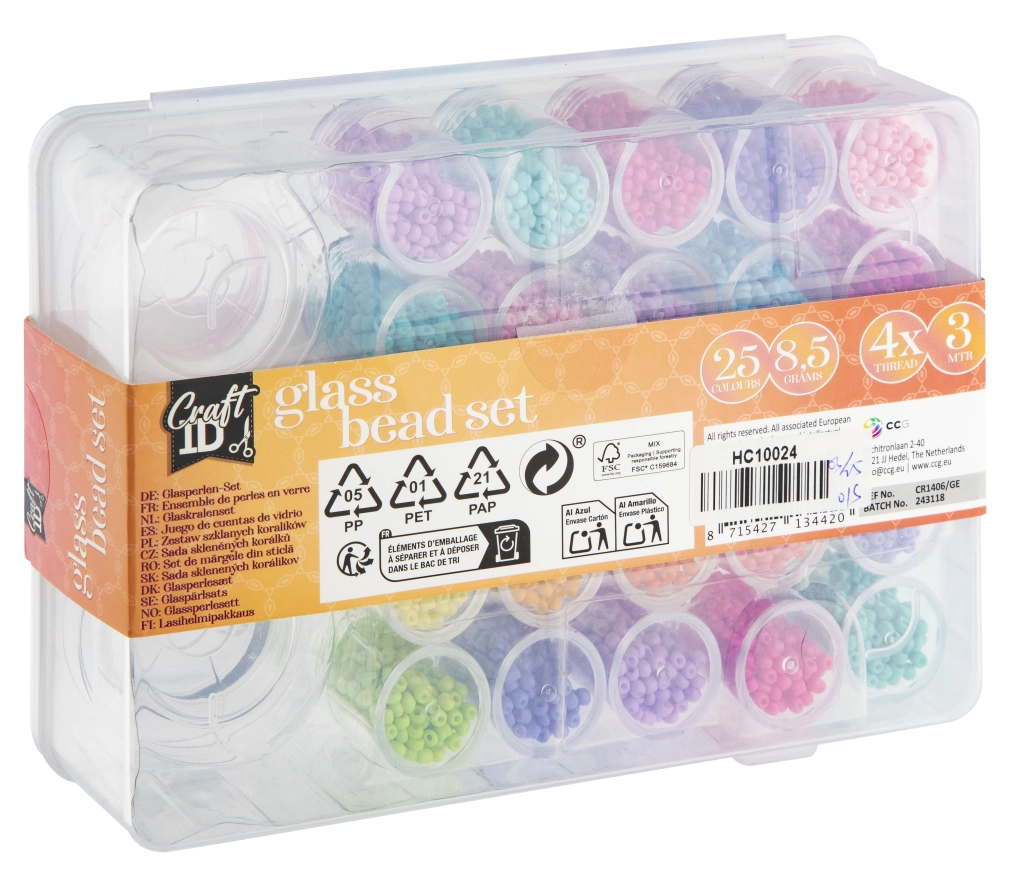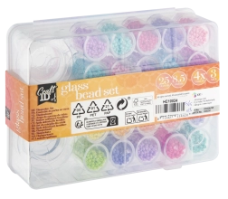 Šis lielais stikla pērlīšu komplekts piedāvā plašu 25 krāsu izvēli jūsu radošajiem projektiem. Pateicoties caurspīdīgajam organizatoram ar nodalījumiem, visi toņi ir pārskatāmi un pa rokai, ļaujot ātri kombinēt krāsas unikāliem dizainiem.