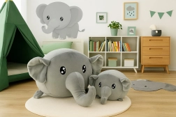 Šis plīša ziloņu komplekts universālā pelēkā krāsā ir radīts ikdienas mīļošanai, rotaļām un atpūtai. Augstas kvalitātes mīkstais plīšs ir saudzīgs bērna ādai, bet drošās izšūtās acis nodrošina mierīgas rotaļas bez sīkām detaļām. Mazais zilonis (20 cm) ir lielisks biedrs gultiņā, bet lielākais (40 cm) pārtop ērtā spilventiņā automašīnai vai stilīgā dekorācijā bērnistabā.