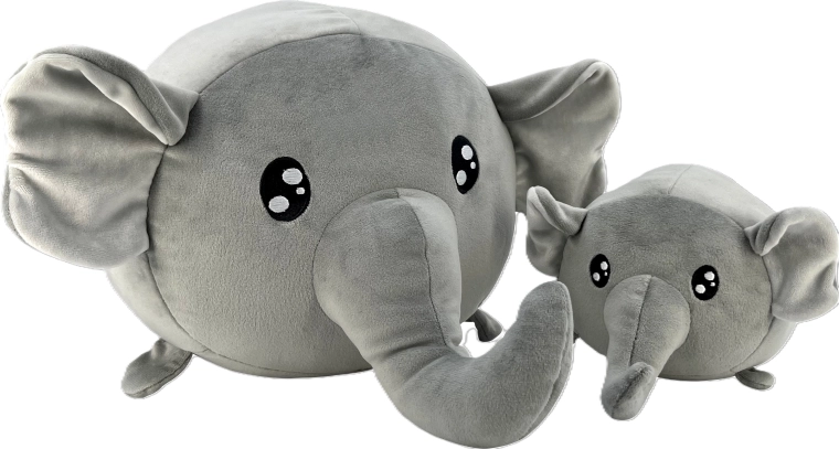 Mīlīgs divu plīša ziloņu komplekts – mammīte un mazulis – sniedz maigus apskāvienus, drošas izšūtas detaļas un komfortu bērniem visās vecuma grupās. Mazākais zilonītis ir ideāls kā mīļmantiņa zīdaiņiem, lielākais kalpo kā ērts spilventiņš ceļojumiem un bērnistabai. Vienkārša kopšana, mazgājot 30 °C.