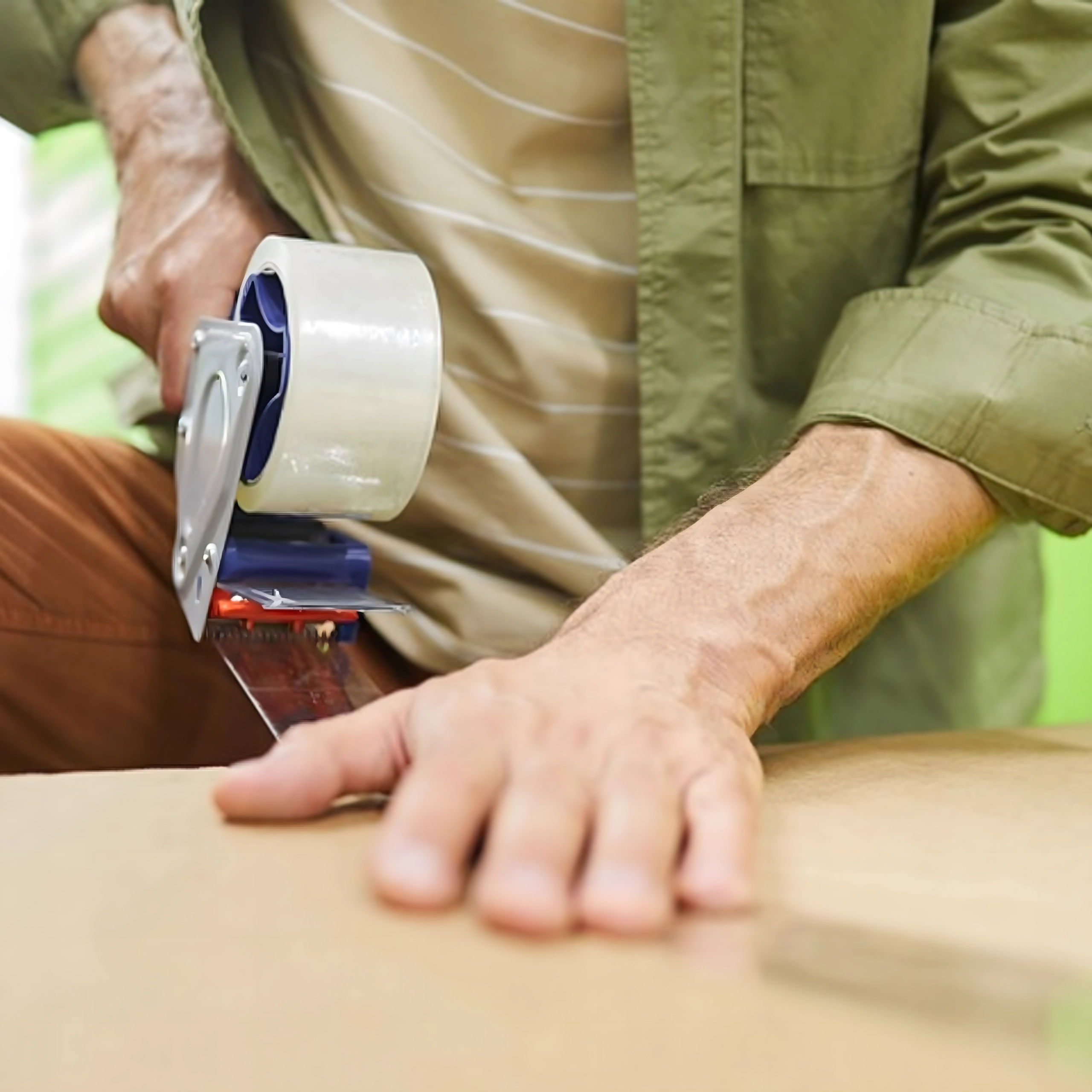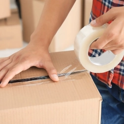 Caurspīdīga lente ar augstu saķeri droši aizver kartona kastes un aizsargā saturu pārvadāšanas un uzglabāšanas laikā.
