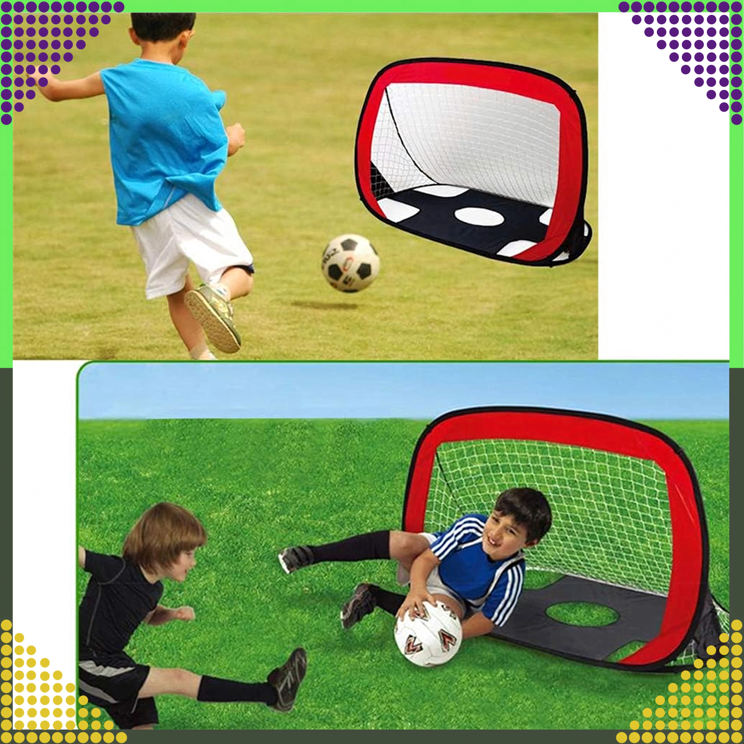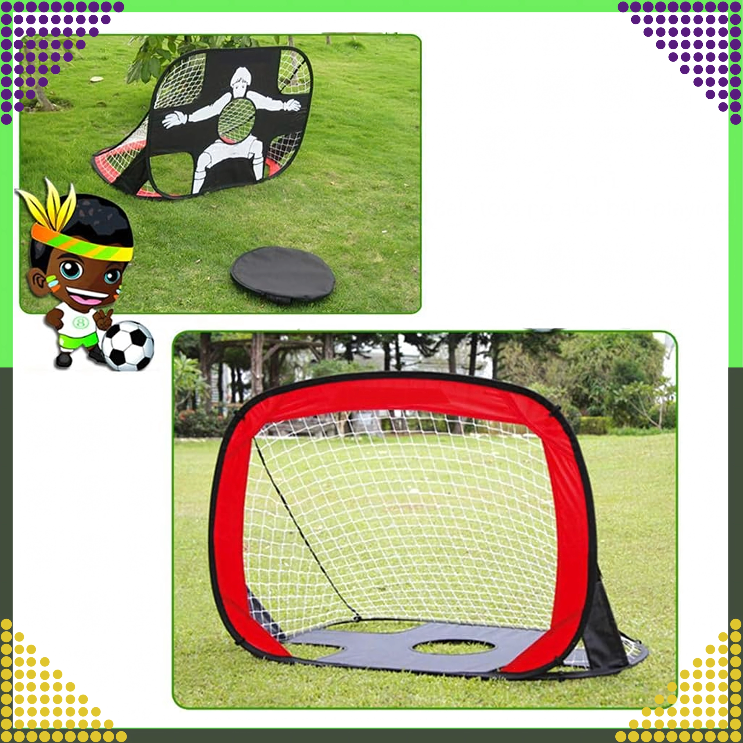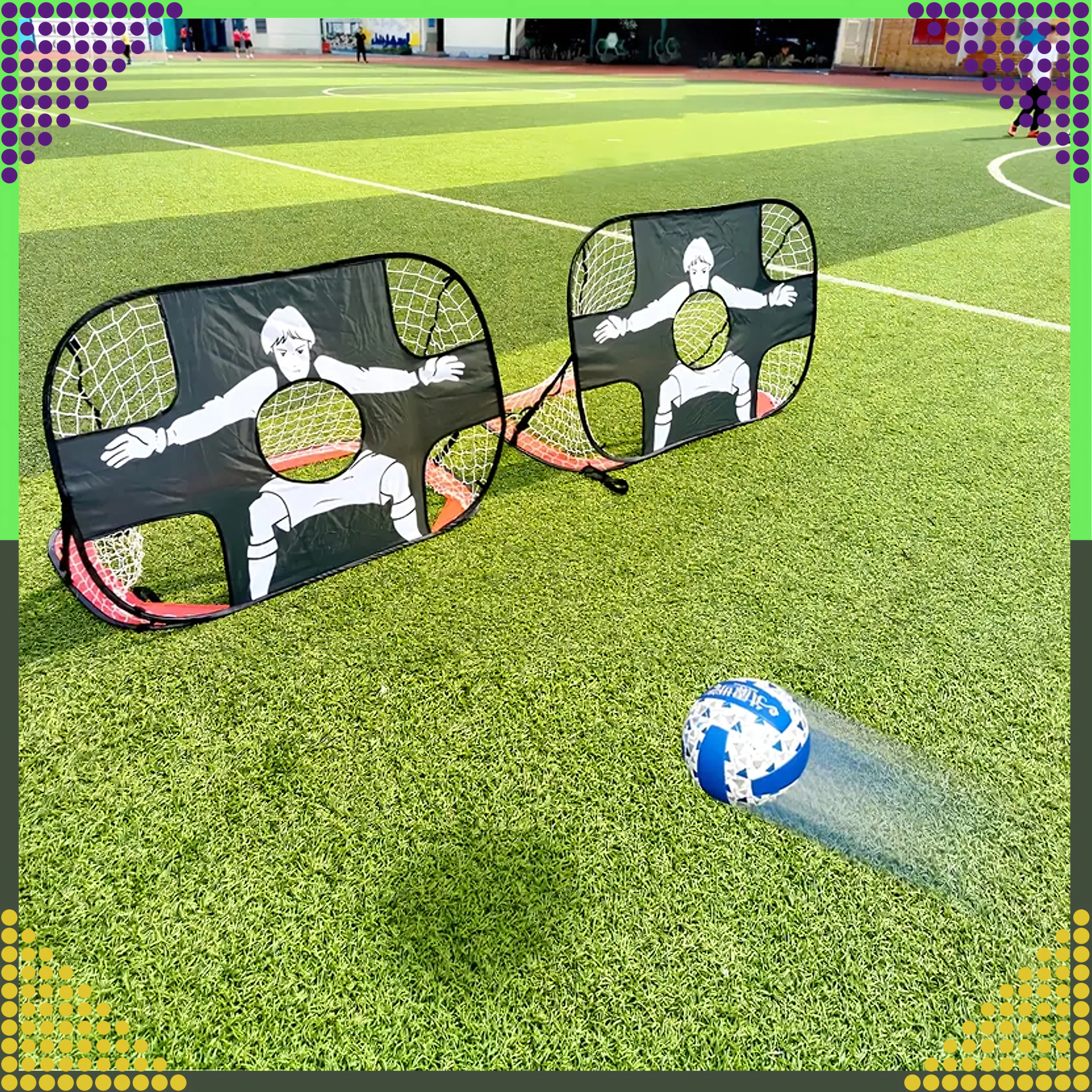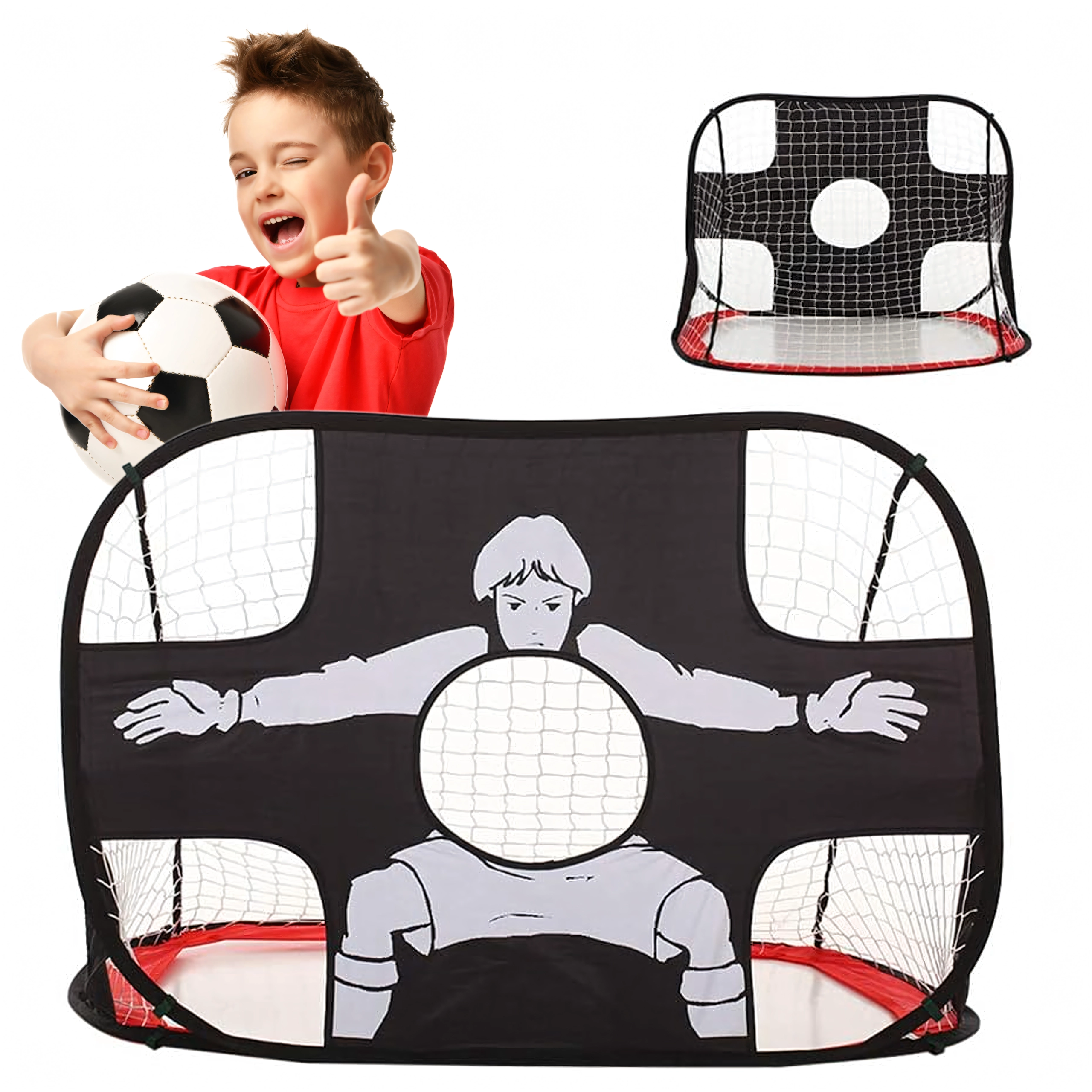 Vieglie un pārnēsājamie futbola vārti 2 vienā ar mērķa audumu piedāvā ātru pašizvēršanos, šautu precizitātes treniņu un izklaidi bērniem un pieaugušajiem. Pateicoties salokāmajai konstrukcijai un praktiskajam pārvalkam, tos ērti paņemsiet līdzi dārzā, laukumā vai parkā.