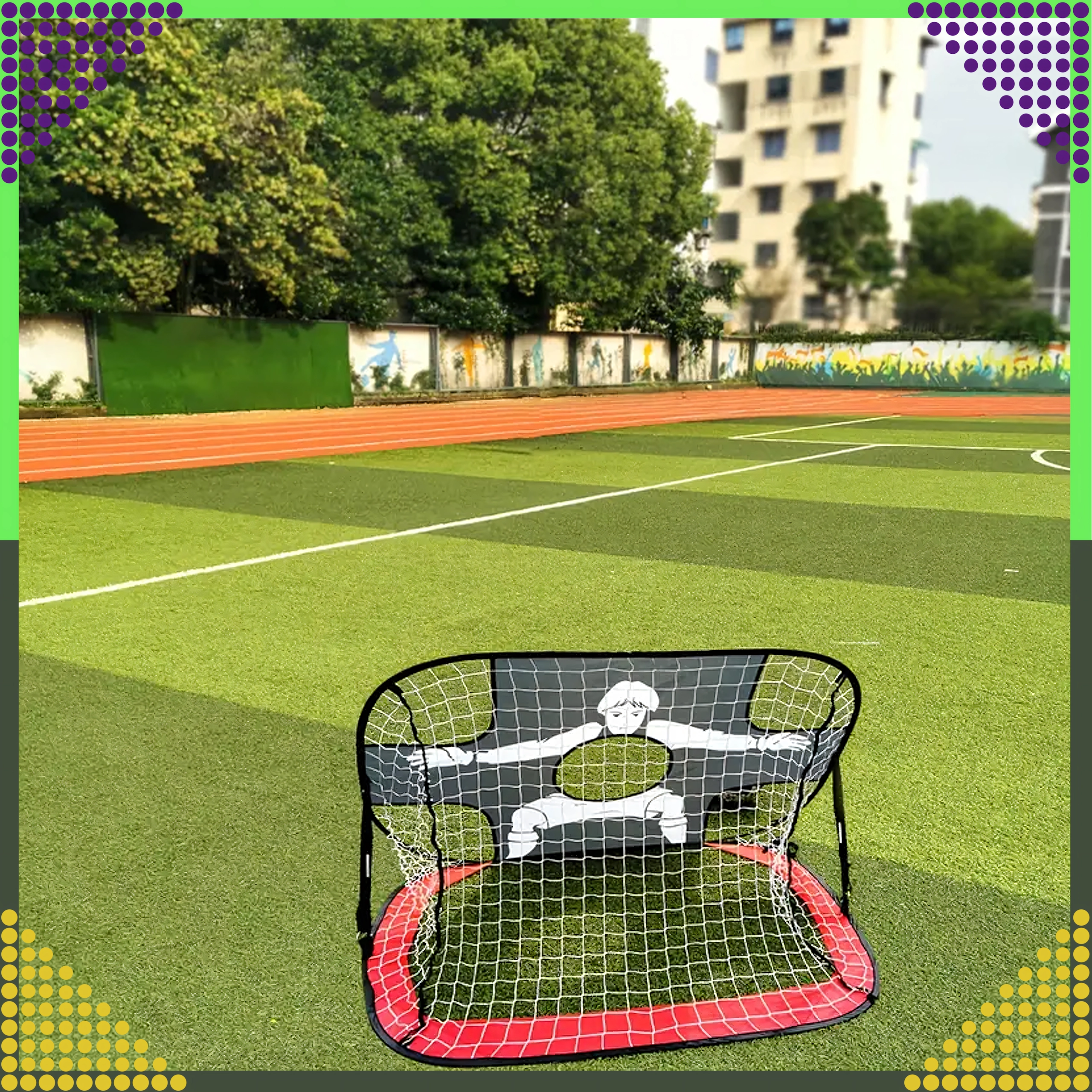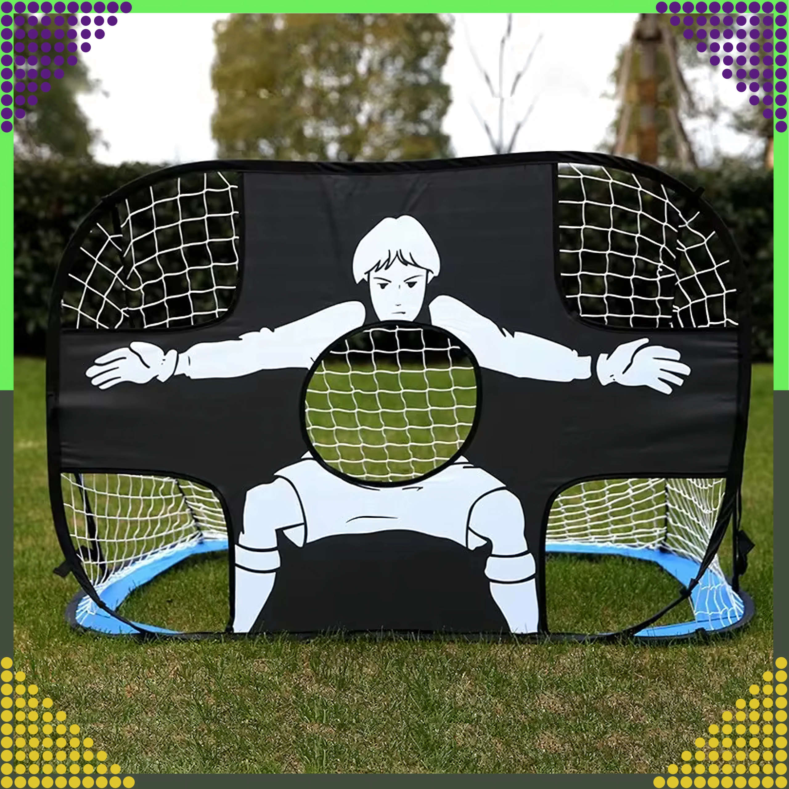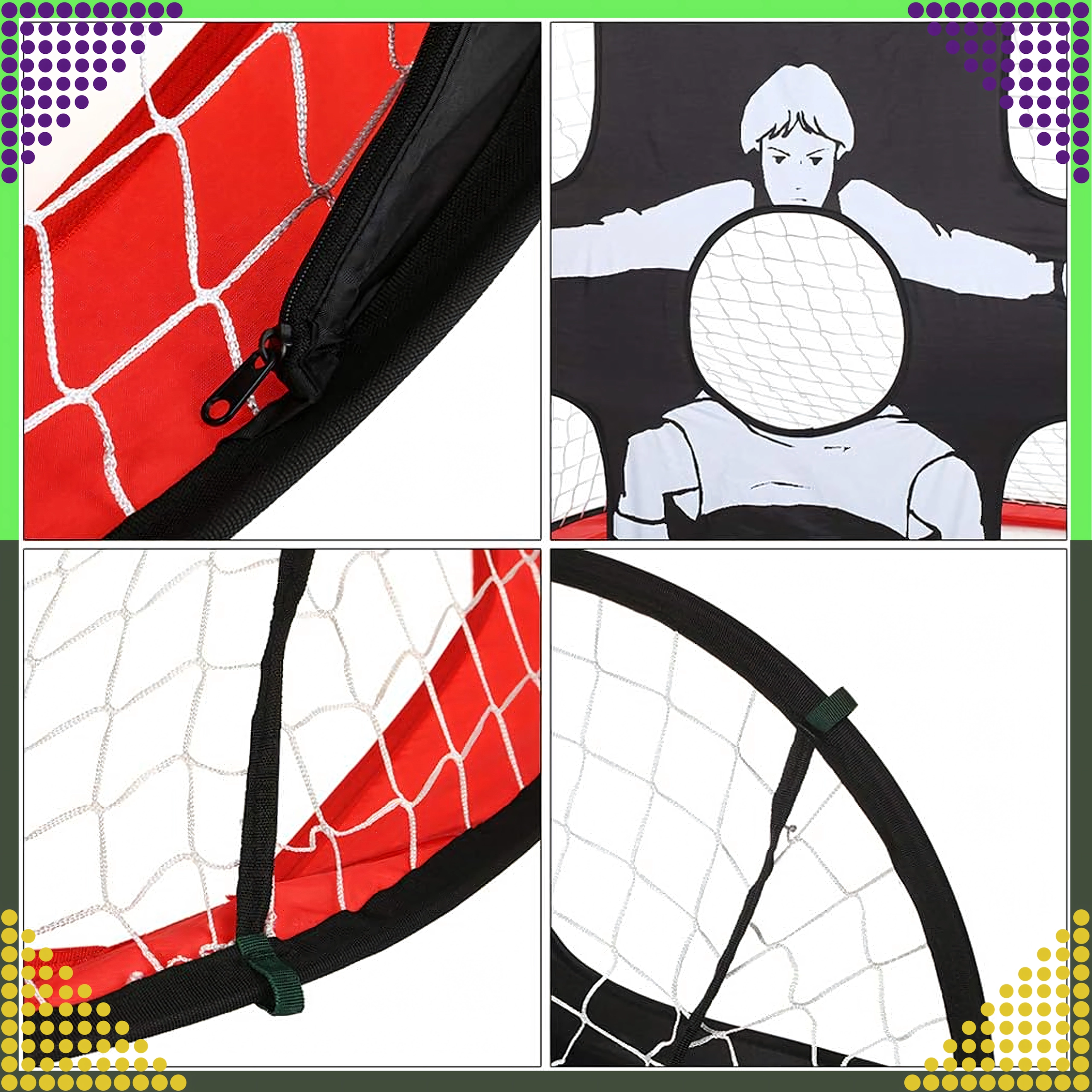 Šie universālie treniņu vārti apvieno klasisko tīklu ar divpusēju mērķa paneli, kas palīdz attīstīt precizitāti, novietojumu un sitiena tehniku. Pop‑up konstrukcija tiek uzstādīta pāris sekundēs, bet pēc treniņa to vienkārši salocīsiet komplektā iekļautajā pārvalkā.