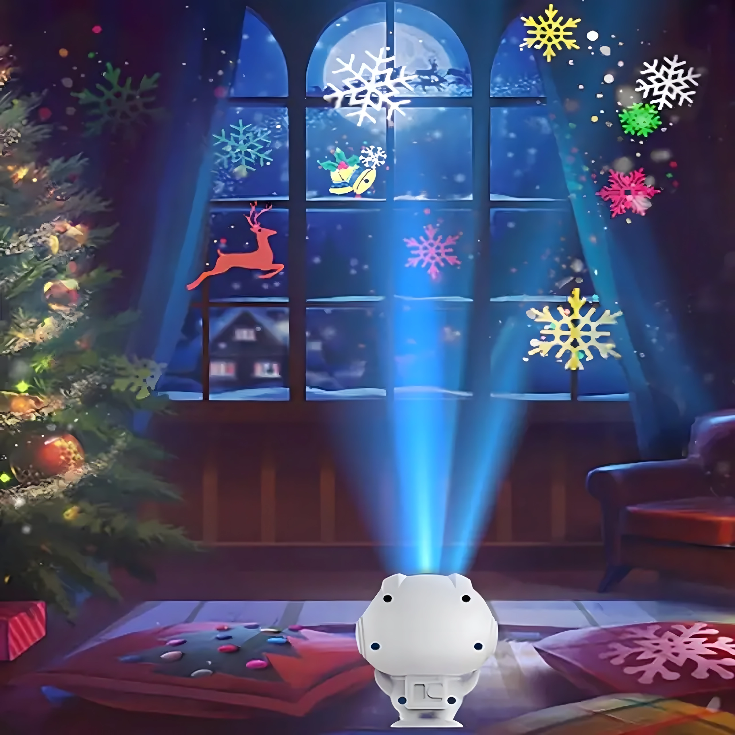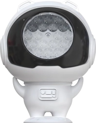 Kompakts astronauta formas projektors ar stabilu pamatni labi iederas uz galda, plaukta vai palodzes un skaisti papildina ziemas interjeru.