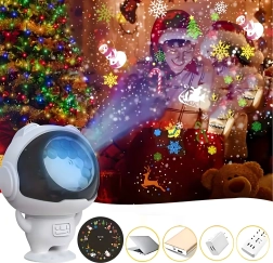 Radiet mājās burvīgu atmosfēru svētku laikā un visa gada garumā. Astronauta projekcijas lampiņa ar krāsainiem rakstiem piepilda sienas un griestus ar jautriem motīviem un ienes interjerā patīkamu gaismu. Pateicoties kompaktajiem izmēriem un stabilajai pamatnei, to ir viegli novietot uz galda, kumodes vai palodzes.