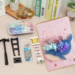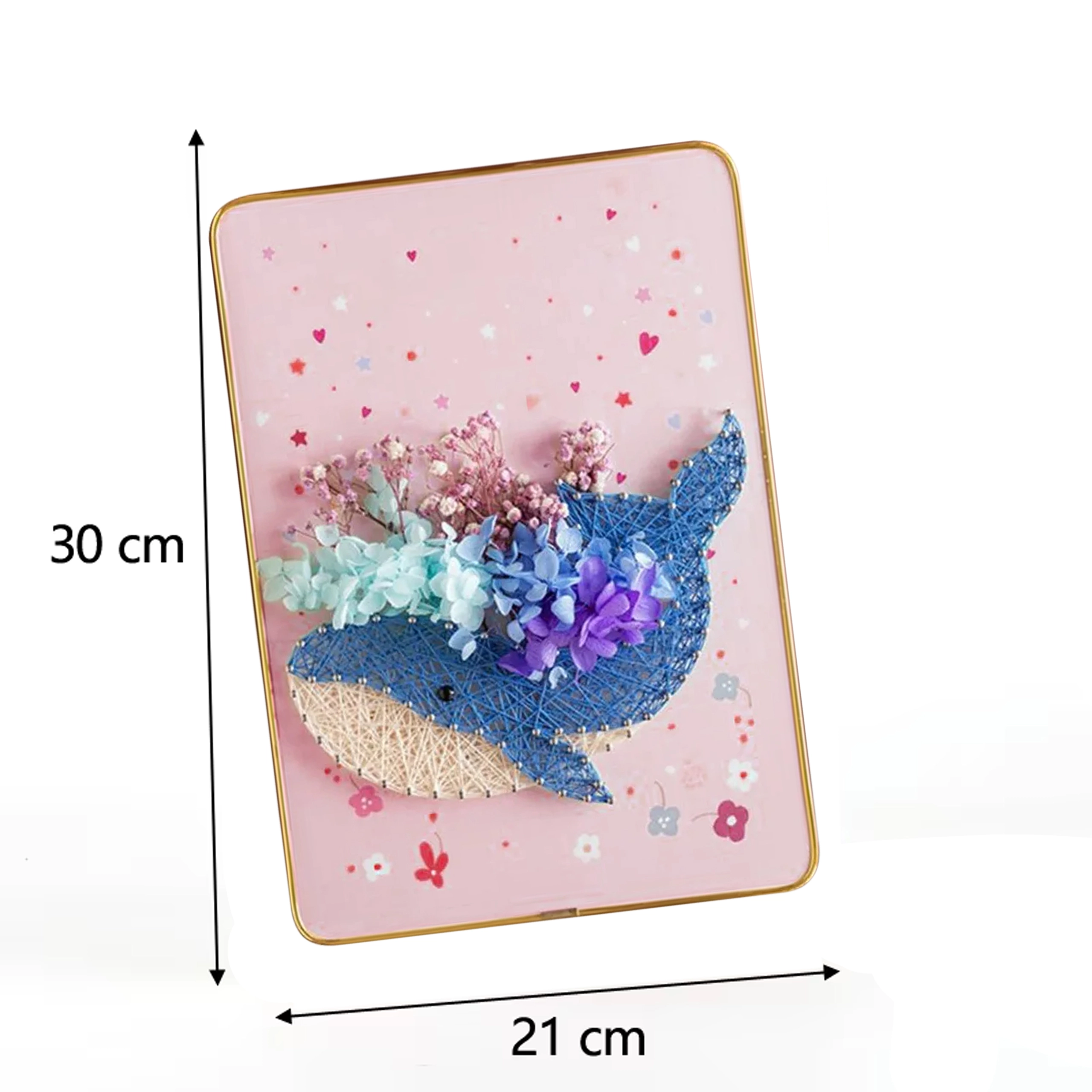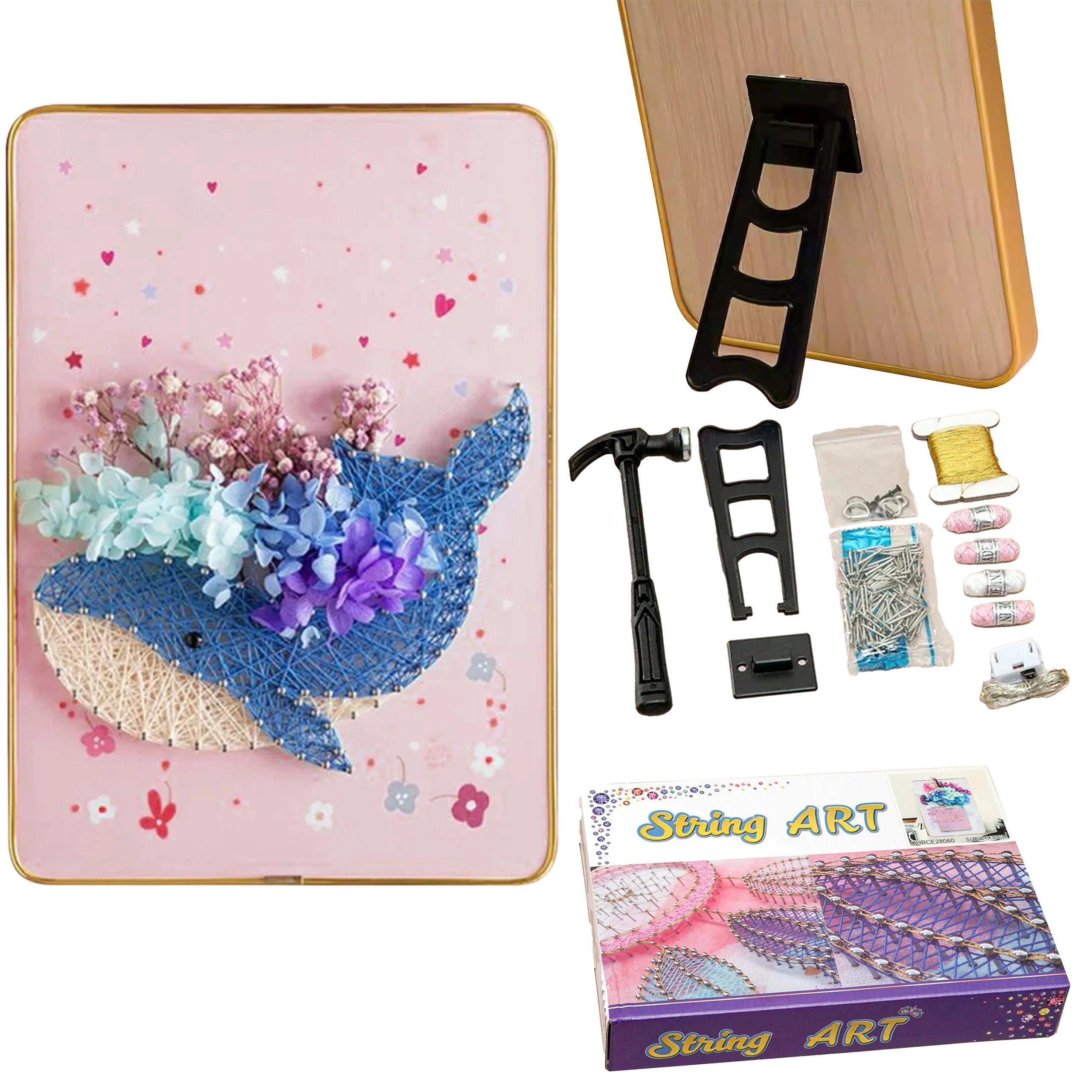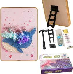 Atklājiet aizraujošo “pavedienu mākslu” bērniem un pieaugušajiem. Šis radošais string art komplekts satur visu nepieciešamo dekoratīva attēla izveidei rāmī 21 × 30 cm ar delfīna motīvu. Pateicoties integrētajām LED gaismiņām, jūsu darbs iegūs burvīgu noskaņu. Lieliska dāvana, kas attīsta radošumu, iztēli un sīko motoriku.