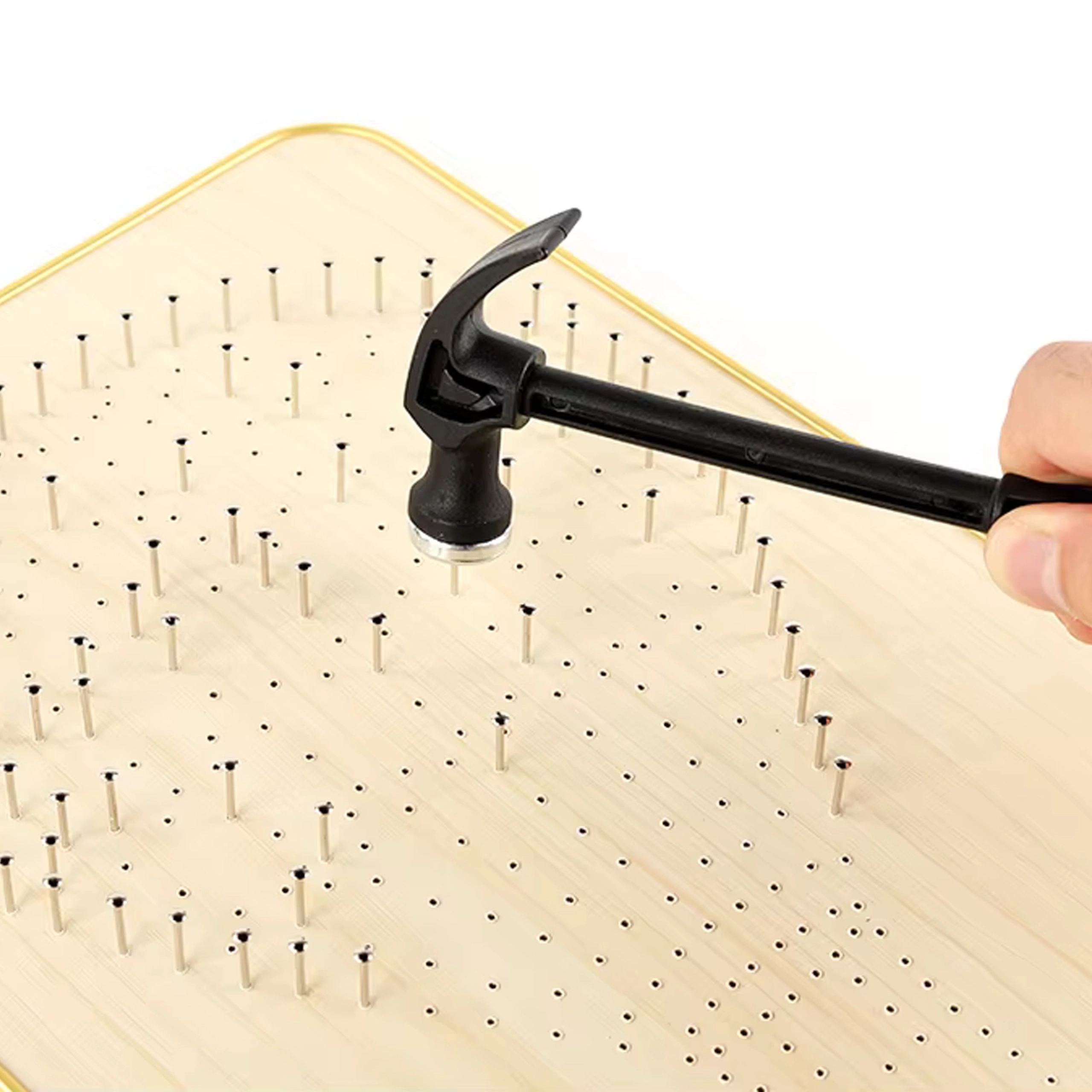 Izveidojiet savu sienas mākslas darbu bez krāsām – pietiek ar nagliņām, diegiem un šablonu. Komplekts ved cauri vienkāršam procesam: nagliņas iedzen pamatnē pa kontūru, pēc tam tās saauž ar diegu. Rezultāts ir telpisks attēls ar oriģinālu dizainu, kas izcelsies jebkurā interjerā.