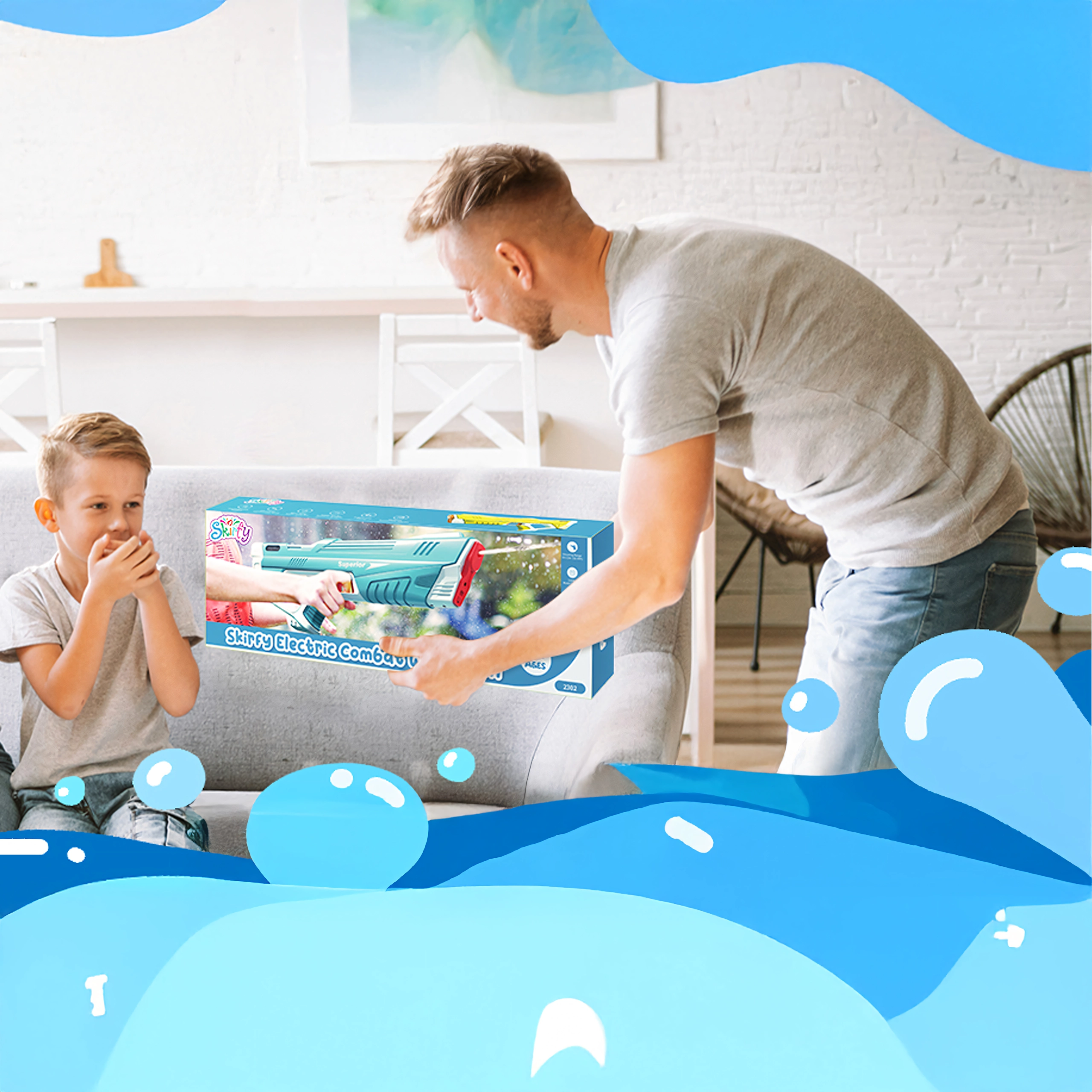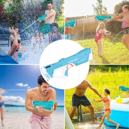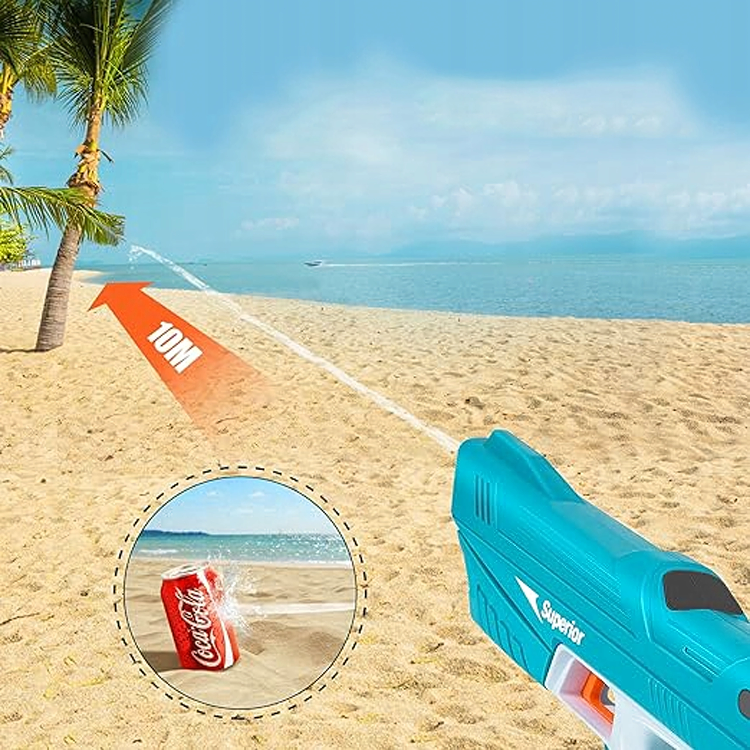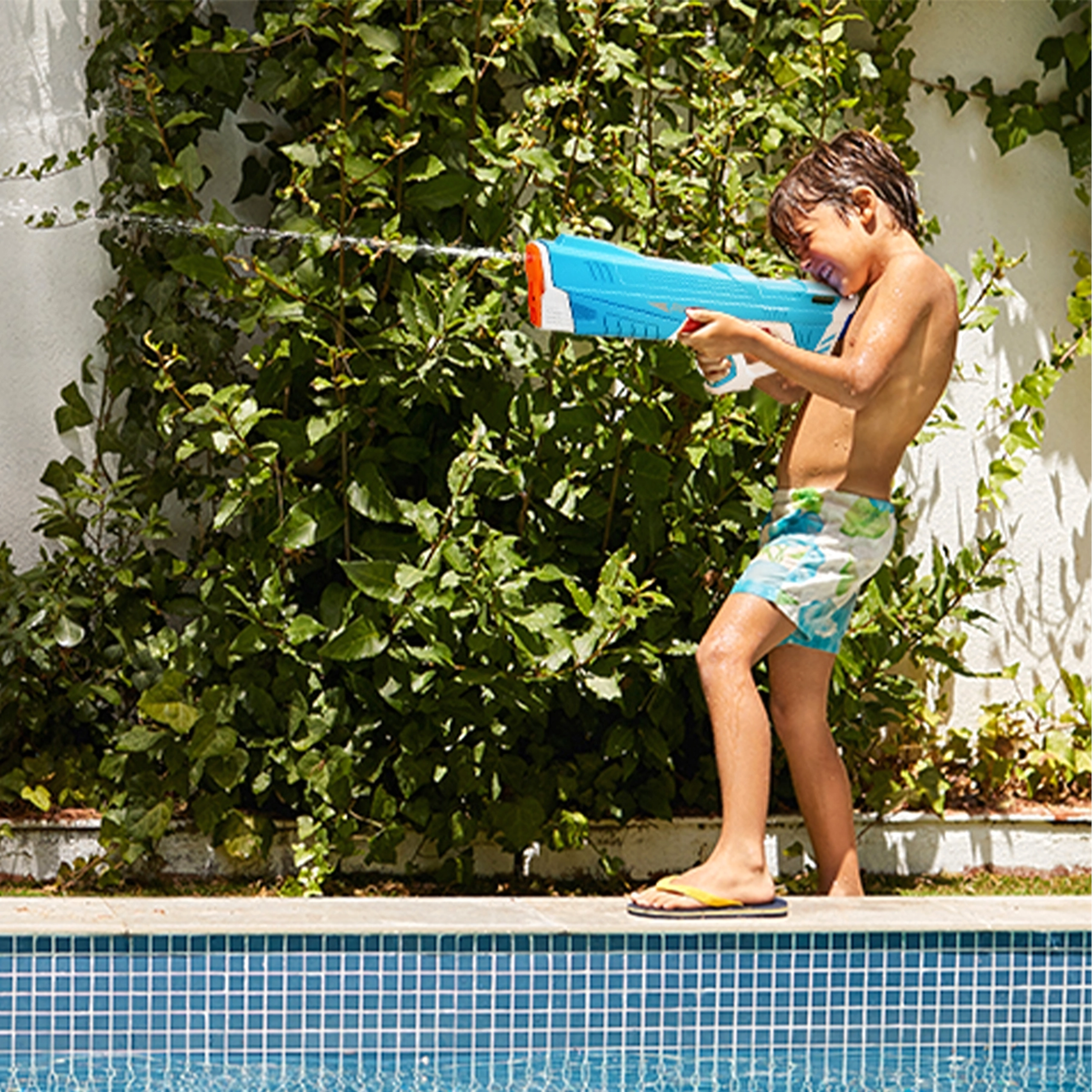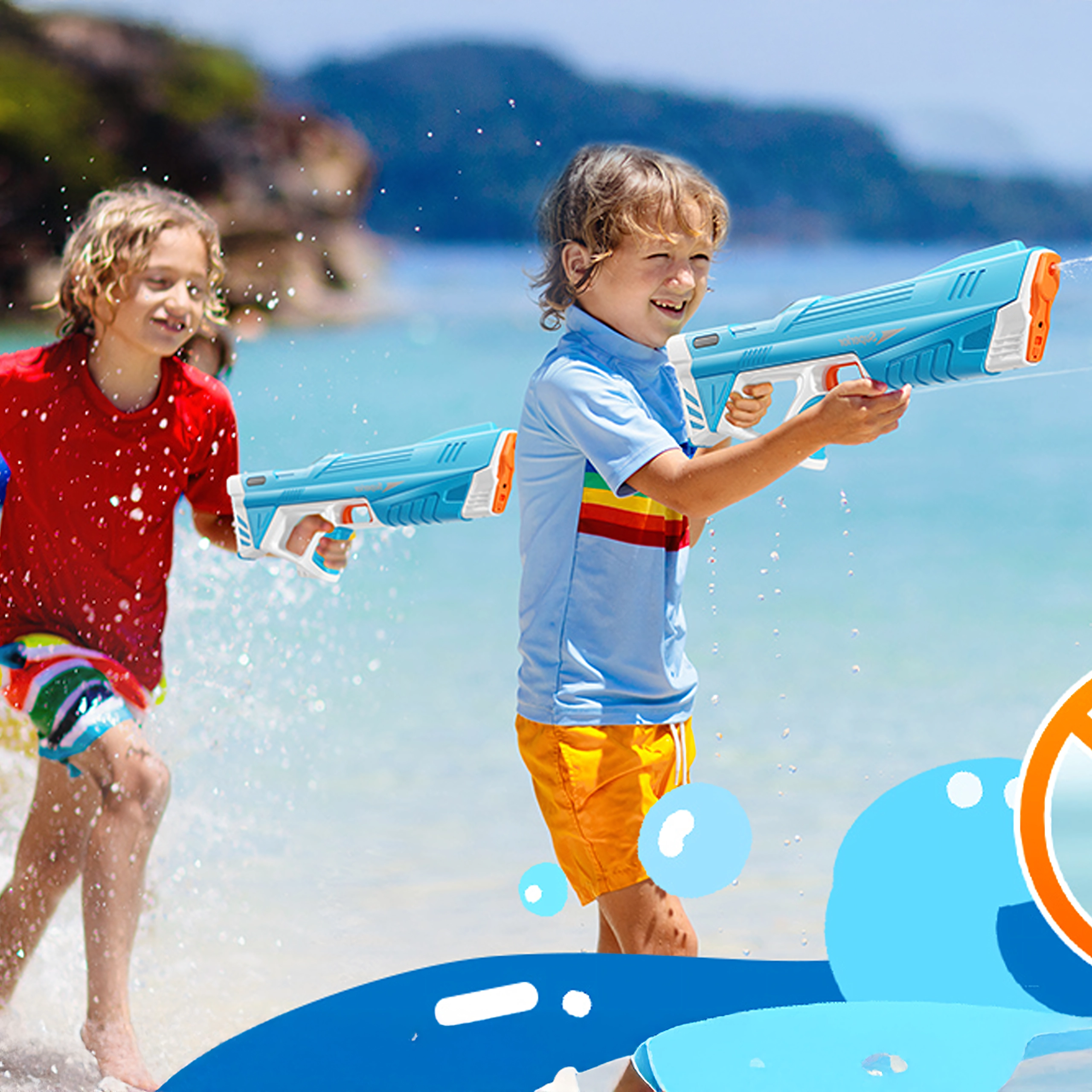 Ātra automātiskā uzpilde un uzticams elektriskais piedziņas mehānisms atvieglo lietošanu, lai bērni var koncentrēties tikai uz izklaidi. Lielais šāviena attālums līdz 10 m padara katru spēli par aizraujošu ūdens kauju.