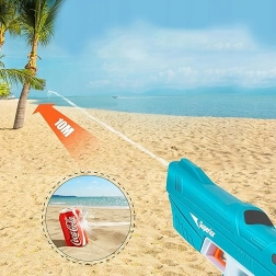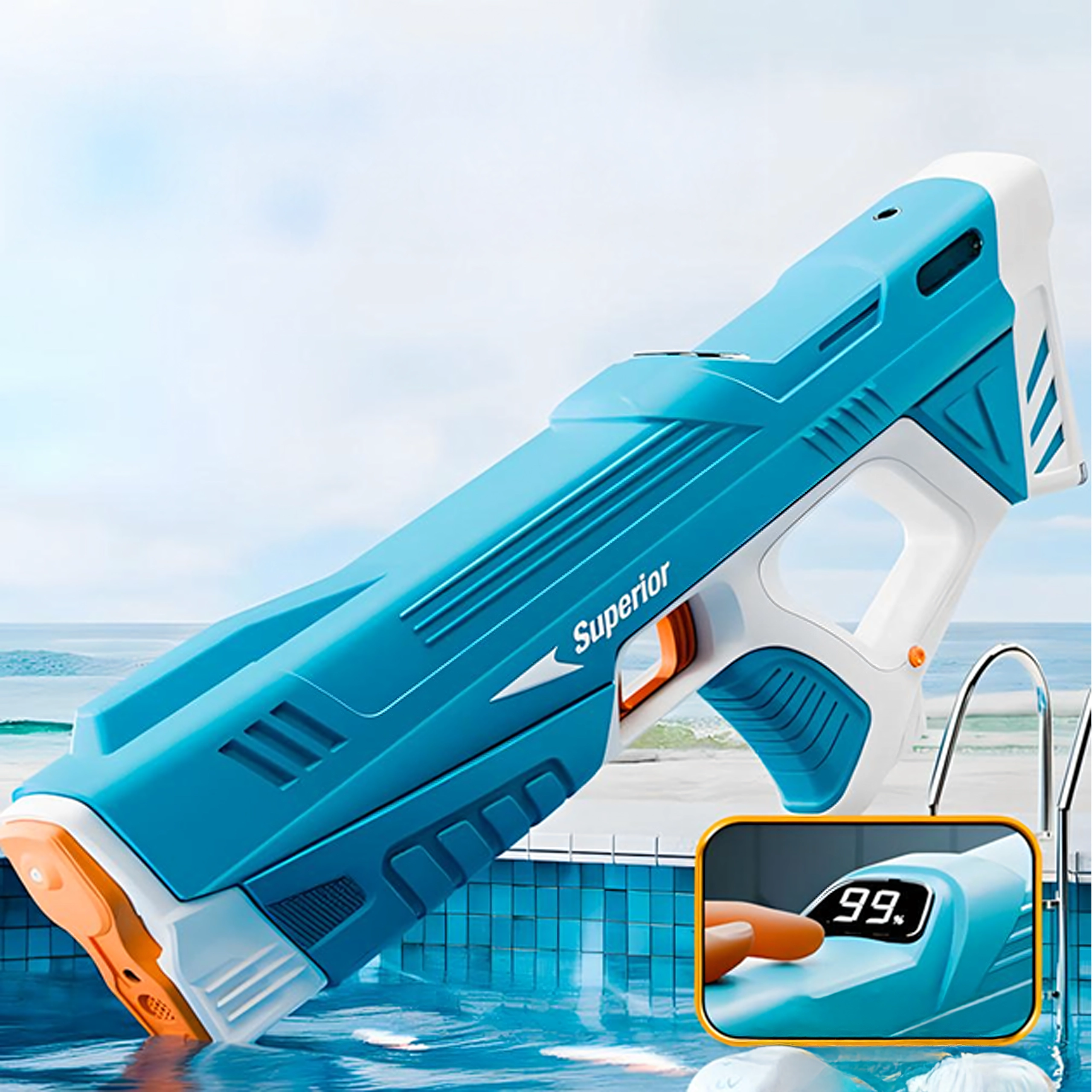 Elektriskā ūdens pistole nodrošina ērtību bez pumpēšanas un ilgu darbību, pateicoties USB uzlādei. Ergonomiska roktura forma, izturīga plastmasas konstrukcija un dinamiska ūdens strūkla garantē aktīvas cīņas pie baseina un pludmalē.