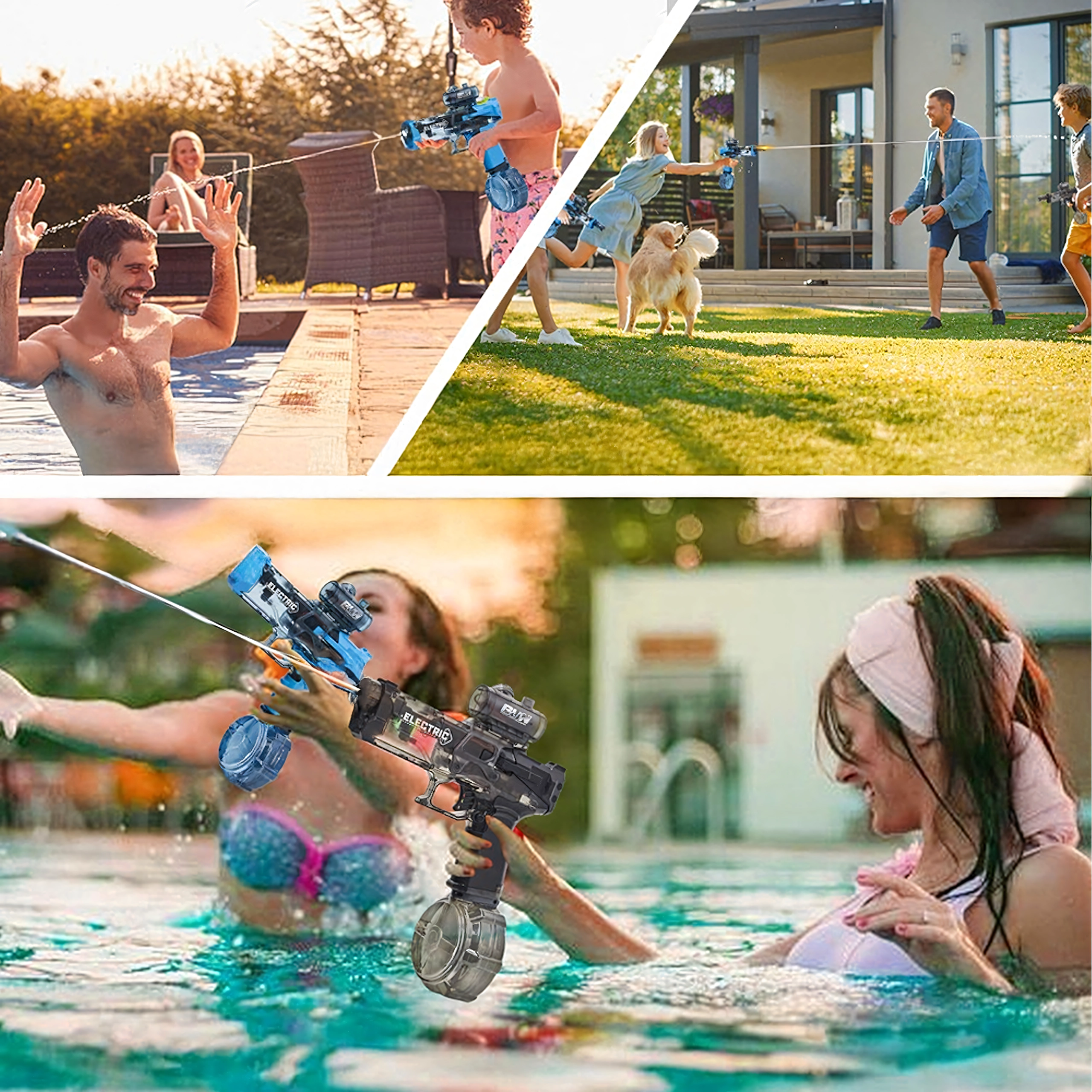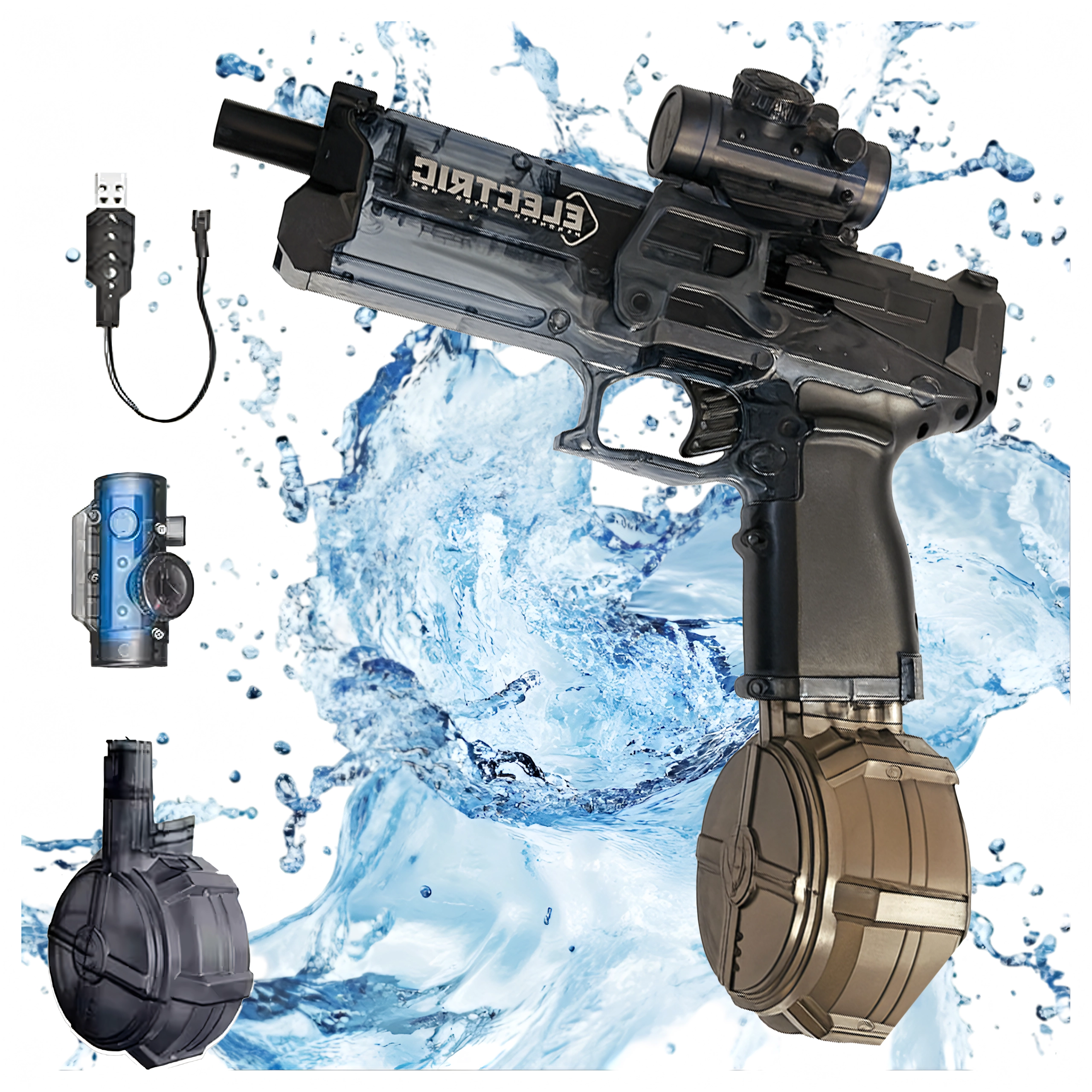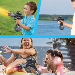 Izbaudi vasaras ūdens cīņas ar elektrisko ūdens pistoli ar automātisko šaušanas sistēmu, lielu tvertni un iebūvētu USB akumulatoru. Tā nodrošina nepārtrauktu darbību līdz pat 35 minūtēm un darbības distanci līdz 10 metriem maksimālai izklaidei gan pie baseina, gan dārzā.