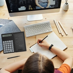 LCD piezīmju bloks ļauj rakstīt ar irbuli, dzēst ar vienu klikšķi un atgriezties pie aprēķiniem bez lieka papīra patēriņa. Ierīce ir lieliska studentiem, grāmatvežiem un ikdienas lietošanai mājās.