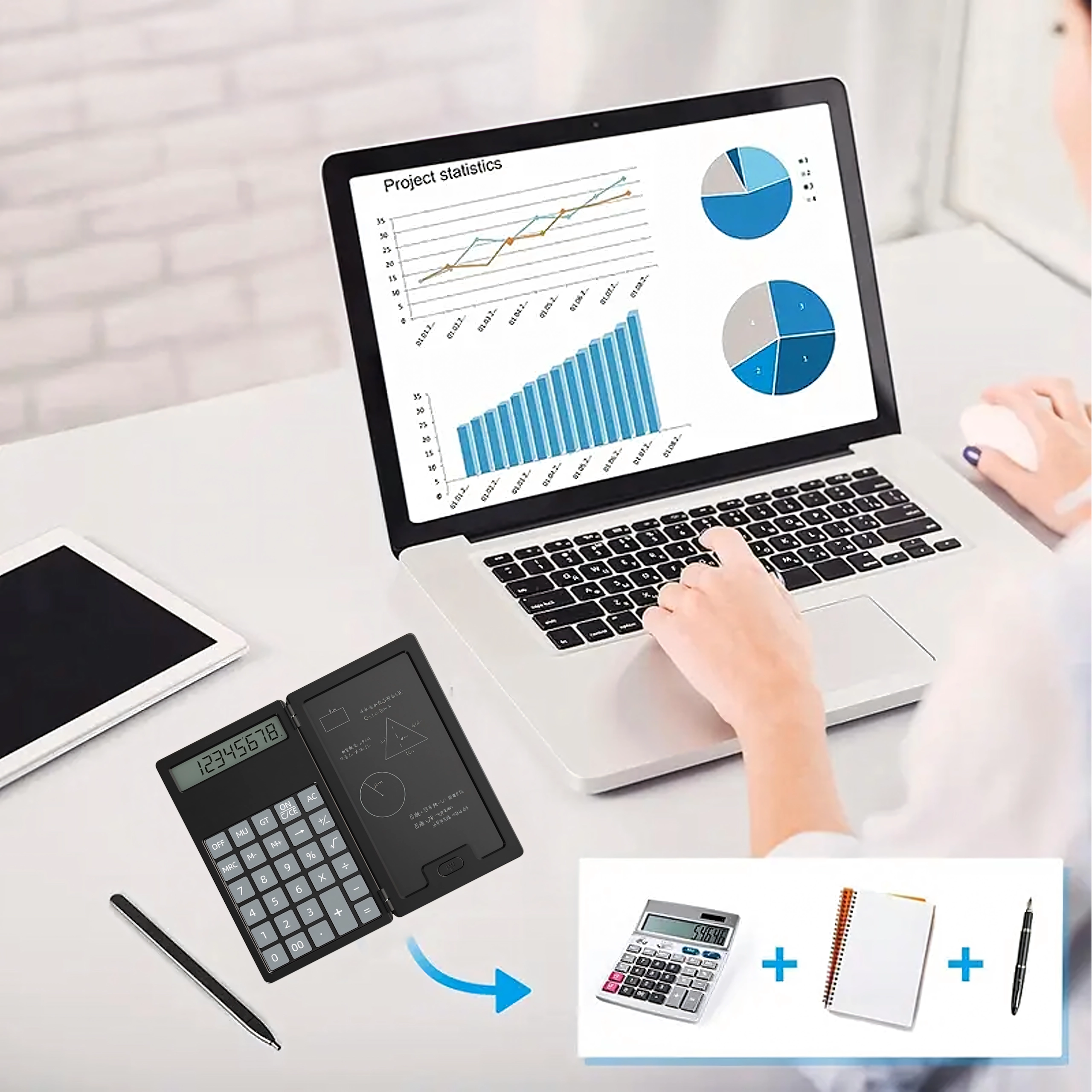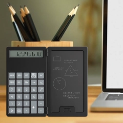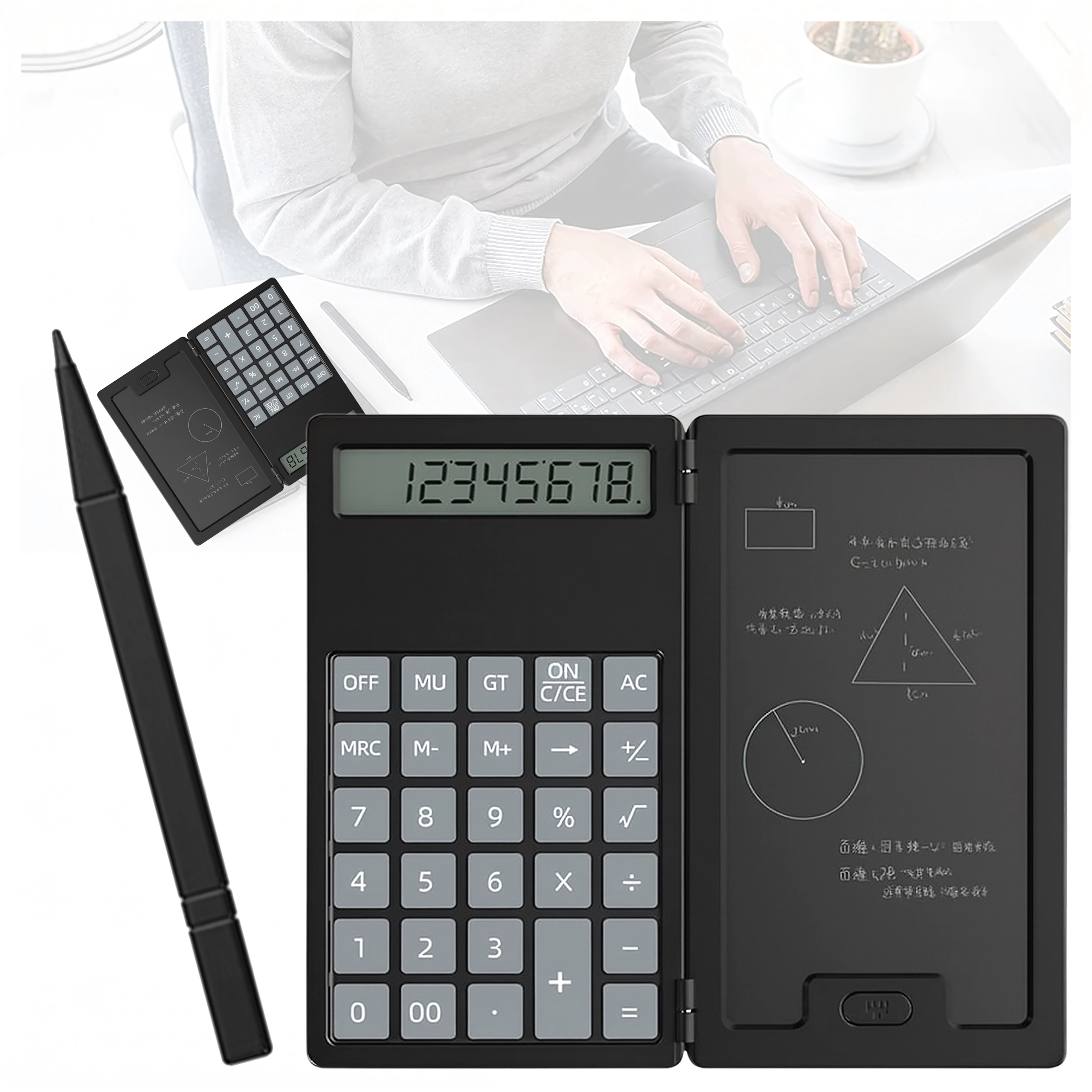 Šis viedais, salokāmais kalkulators apvieno klasiskus aprēķinus ar praktisku LCD plāksni piezīmēm. Pateicoties vieglajai un plānajai konstrukcijai, to viegli ielikt somā vai kabatā, lai vienmēr būtu pa rokai ātriem aprēķiniem un pierakstiem.