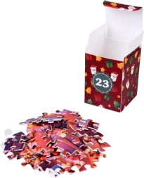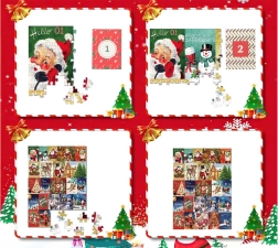 Atklājiet Ziemassvētku burvību ar šo oriģinālo adventa kalendāru, kurā paslēptas 24 atsevišķas puzles ar Ziemassvētku, Svētā Mikoļā un ziemas noskaņu motīviem. Katrs lodziņš slēpj 42 gabaliņus, kas, saliekot visu dienu komplektus, veidos lielu attēlu 70 × 50 cm. Ideāla izklaide bērniem un pieaugušajiem, kvalitatīvs kartons, numurētas aizmugures vieglai šķirošanai un VINTAGE stils, kas rada nostalģisku svētku noskaņu.