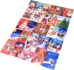 - 24 oriģināli motīvi vintage stilā – sniegavīri, ziemeļbrieži, Santa, eglītes un citas svētku ilustrācijas.