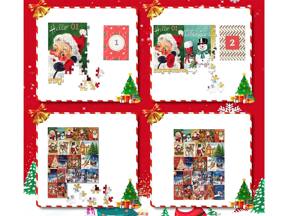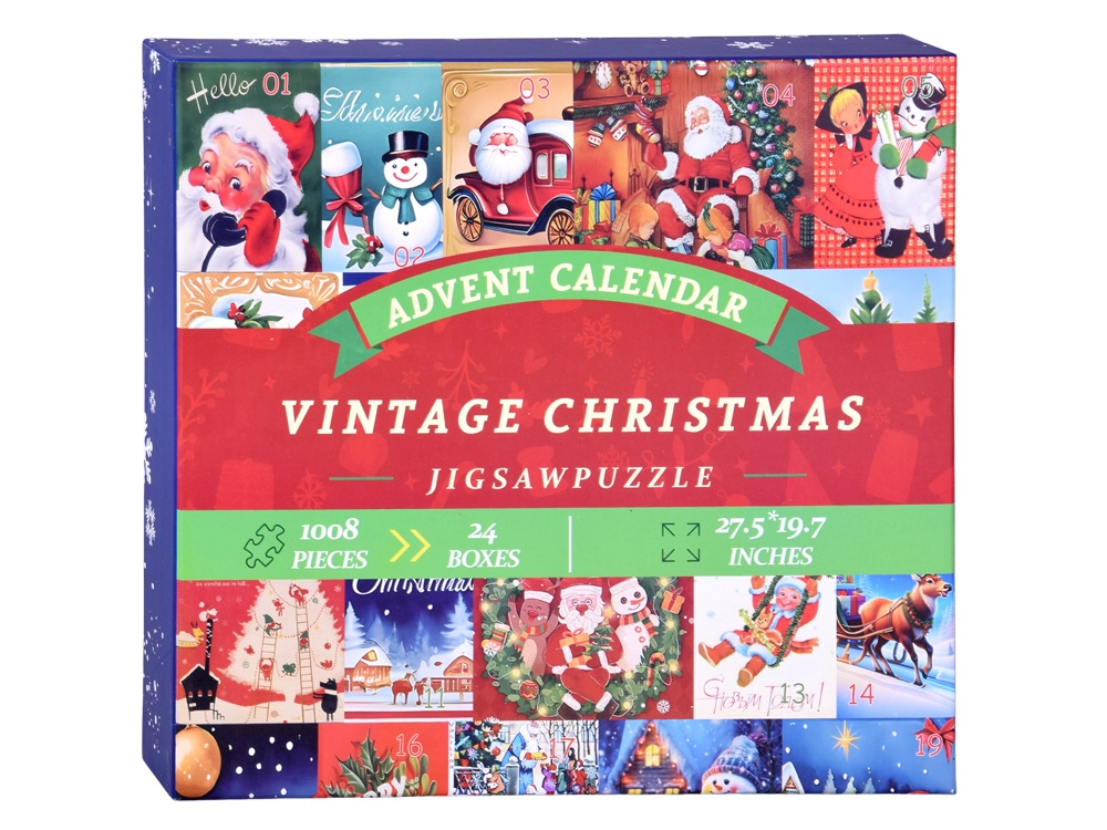 Šis adventa kalendārs apvieno gaidīšanas prieku līdz Ziemassvētku vakarā ar nomierinošu pužļu likšanas izklaidi. Katru dienu atveriet vienu no 24 lodziņiem un iegūstiet mazu puzli ar unikālu vintage motīvu. Saliekot visas puzles, rodas viens kopīgs attēls ar izmēriem 70 × 50 cm, kas lieliski papildinās svētku dekoru.