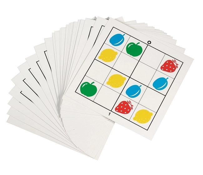 Šī gudrā sudoku versija pašiem mazākajiem piedāvā vienkāršus noteikumus un daudz izklaides. Bērni aizpilda tukšos lauciņus 4×4 režģī tā, lai vienādi attēli neatkārtotos rindā, kolonnā un četros laukumos – gluži kā klasiskajā sudoku, tikai ar jautriem augļu attēliem.