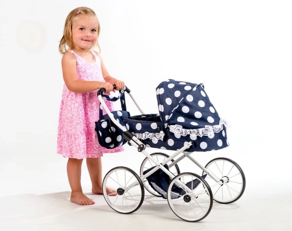 Šie mīlīgie retro leļļu rati ir lieliska izvēle bērniem, kuri mīl ģimenes lomu spēles. Melna krāsa ar baltiem punktiem un dekoratīvām mežģīnēm izskatās stilīgi un laikmetīgi, bet pīts ratanā grozs piešķir ratiem burvīgu izskatu. Pateicoties regulējamam rokturim (55 cm), rati labi pielāgojas bērna augumam.