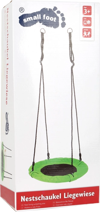 Zaļais šūpuļtīkls stārķa ligzda SMALL FOOT pārvērtīs jebkuru dārzu, terasi vai bērnu istabu par miera un izklaides oāzi. Pateicoties mīkstajai, ērtajai malai un apaļajai formai, tas nodrošina drošu un mājīgu vietu lasīšanai, atpūtai un šūpošanai. Metāla gredzeni atvieglo ātru iekāršanu, bet izturīgie materiāli garantē ilgu kalpošanas laiku.