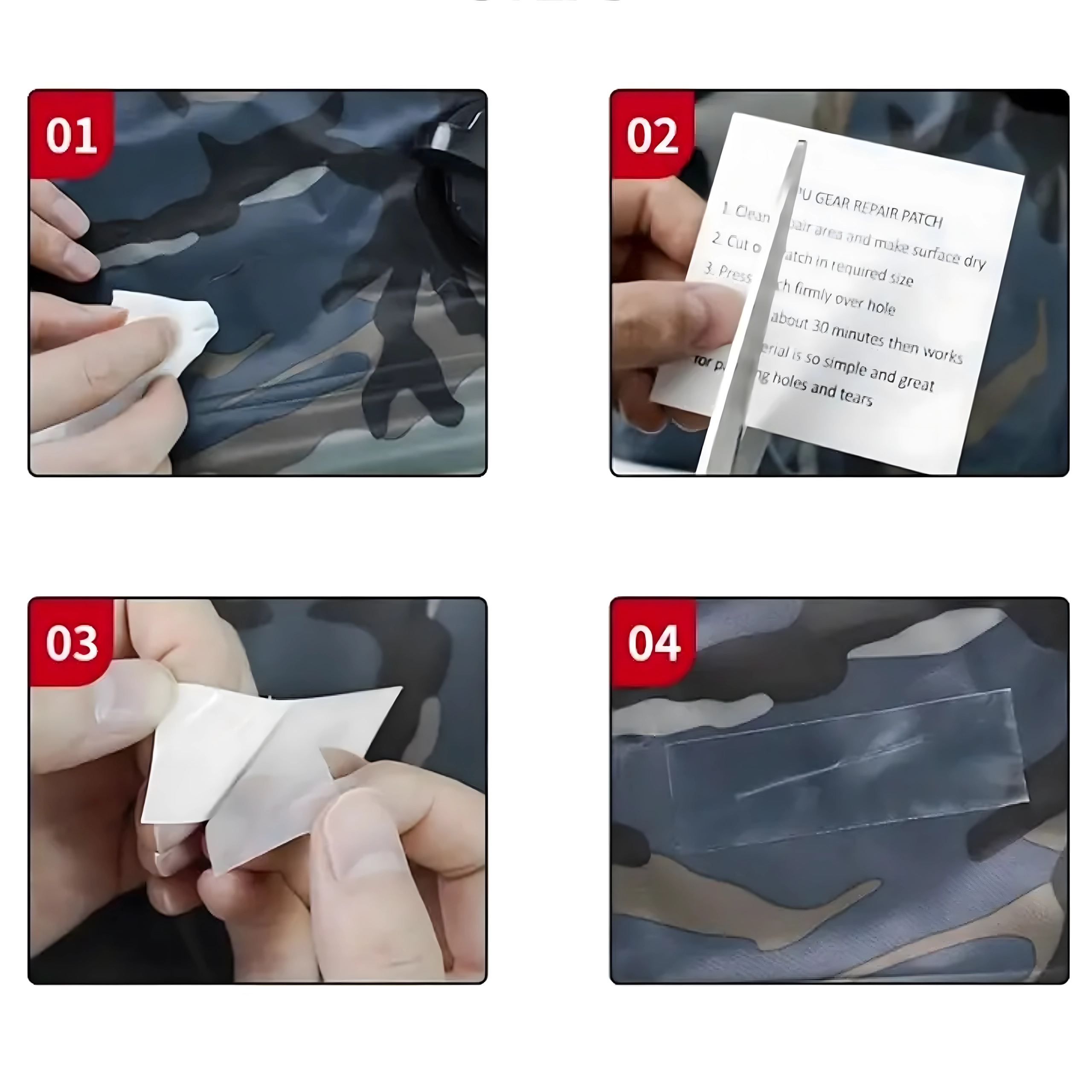 Caurspīdīgie ielāpi saplūst ar virsmu un veido izturīgu pastiprinājumu bez traucējoša izskata. Ideāli audumiem un PVC.