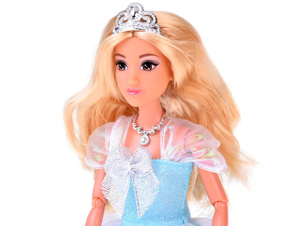 Iedzīvojies ziemas pasakā ar Anlily lelli, kas staro mirdzošā zilā kleitā ar sniegpārsliņām, viegli slāņotām svārku kārtām un sudraba tiāru. Garie blondie mati ir ideāli piemēroti ķemmēšanai, bīžu pīšanai un balles frizūru veidošanai. Kustīgās rokas atvieglo stilīgu pozēšanu un ainu atveidošanu no karaliskās dzīves.