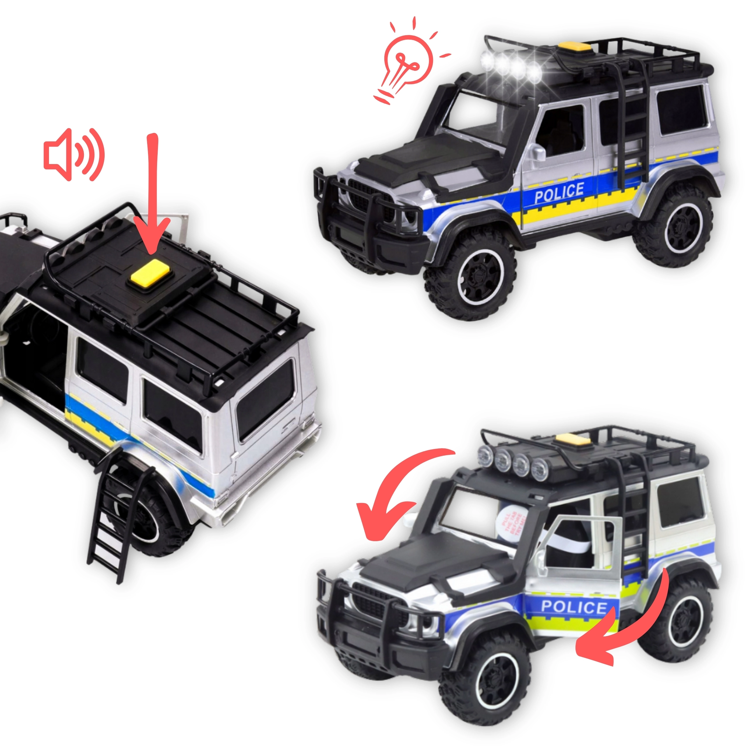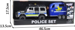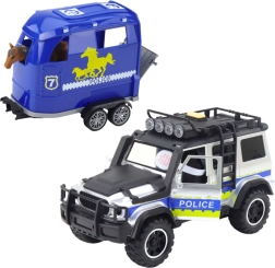 Atklāj policijas dienesta dinamisko pasauli ar realistisku komplektu, kas apvieno izturīgu apvidus auto un piekabi zirga pārvadāšanai. Pateicoties gaismas un skaņas efektiem, spēle šķiet autentiska, un bērni viegli rada pašiem savus stāstus. Atveramas durvis un atvienojama piekabe veicina iztēli un sīko motoriku.