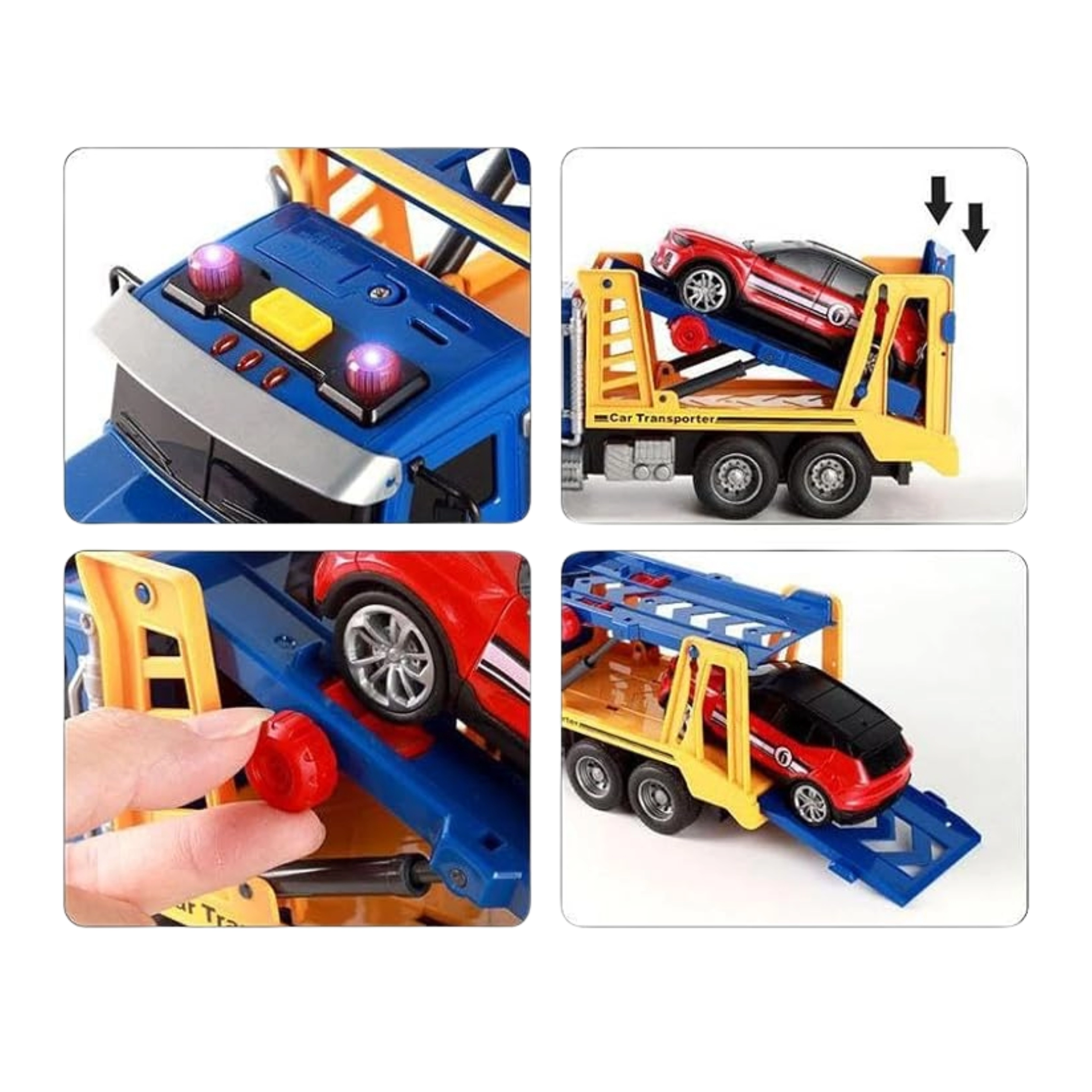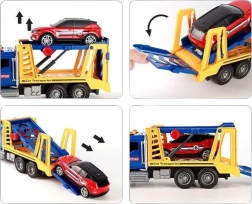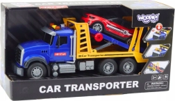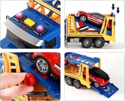 WOOPIE evakuators zilā krāsā ar dzelteni–zilu platformu aizraus ikvienu bērnu, kuram patīk lielie transportlīdzekļi. Kabīnes pogas aktivizē gaismas un skaņas efektus autentiskākai spēlei. Kustīgā platforma ļauj viegli nolaist un iekraut komplektā iekļauto mašīnīti, lai bērni varētu veidot savus satiksmes stāstus.