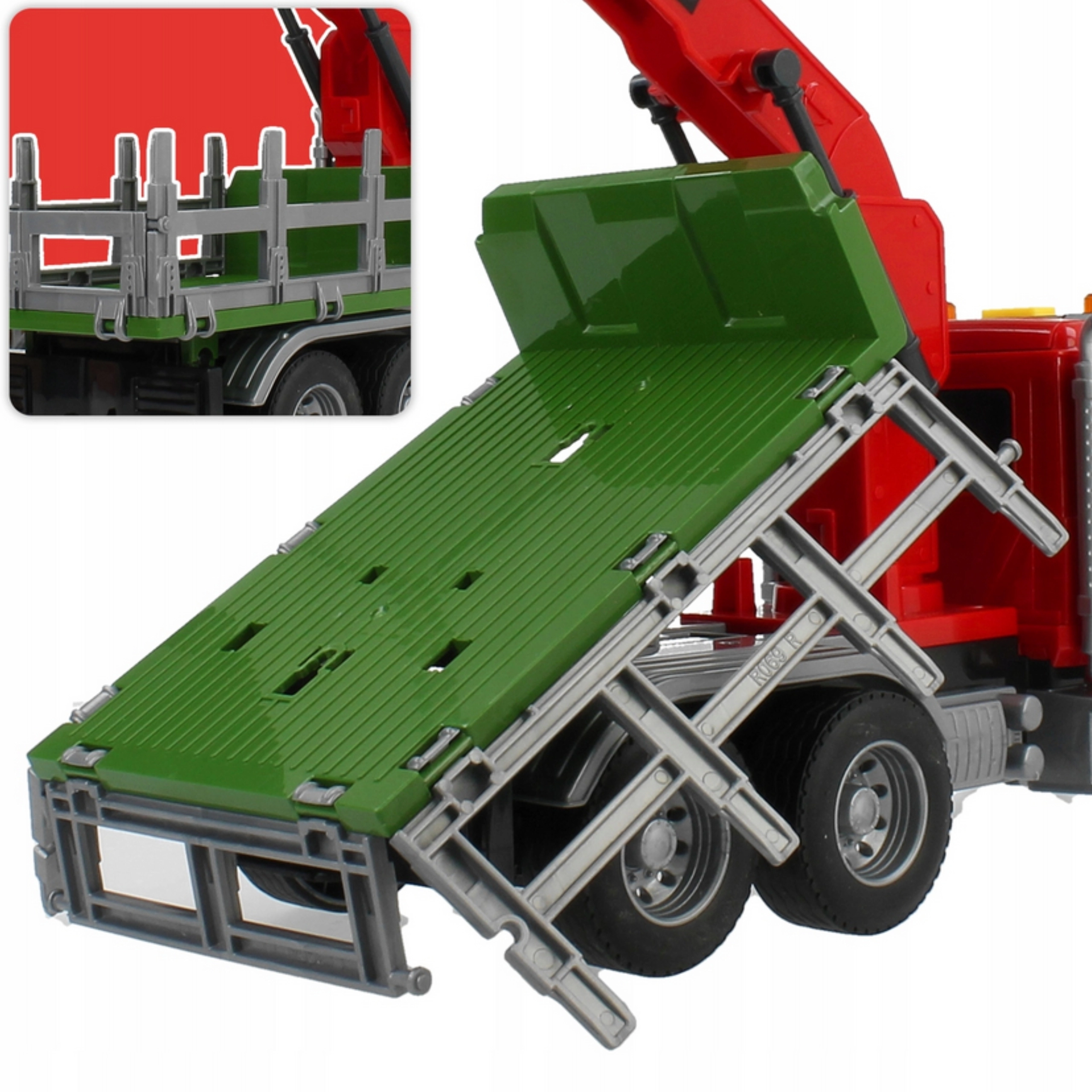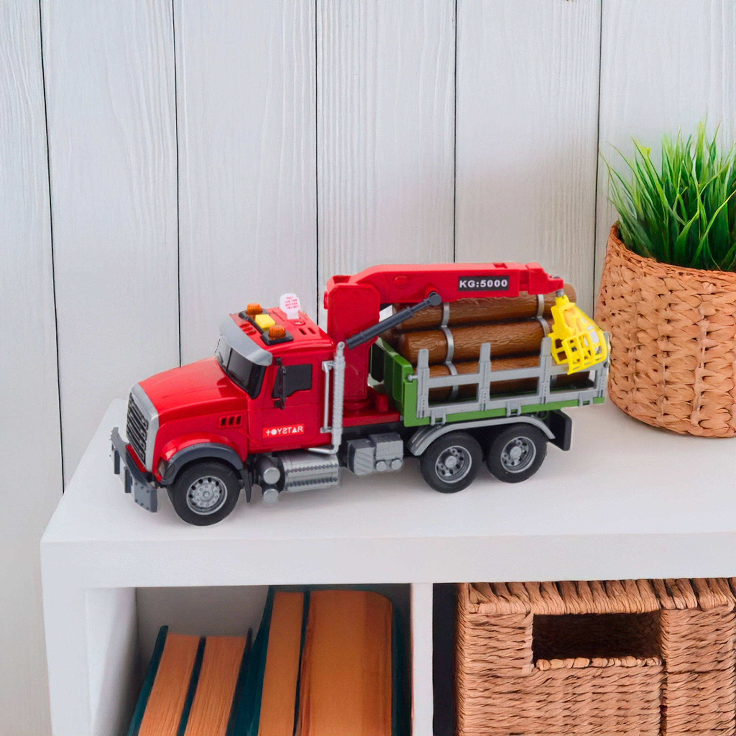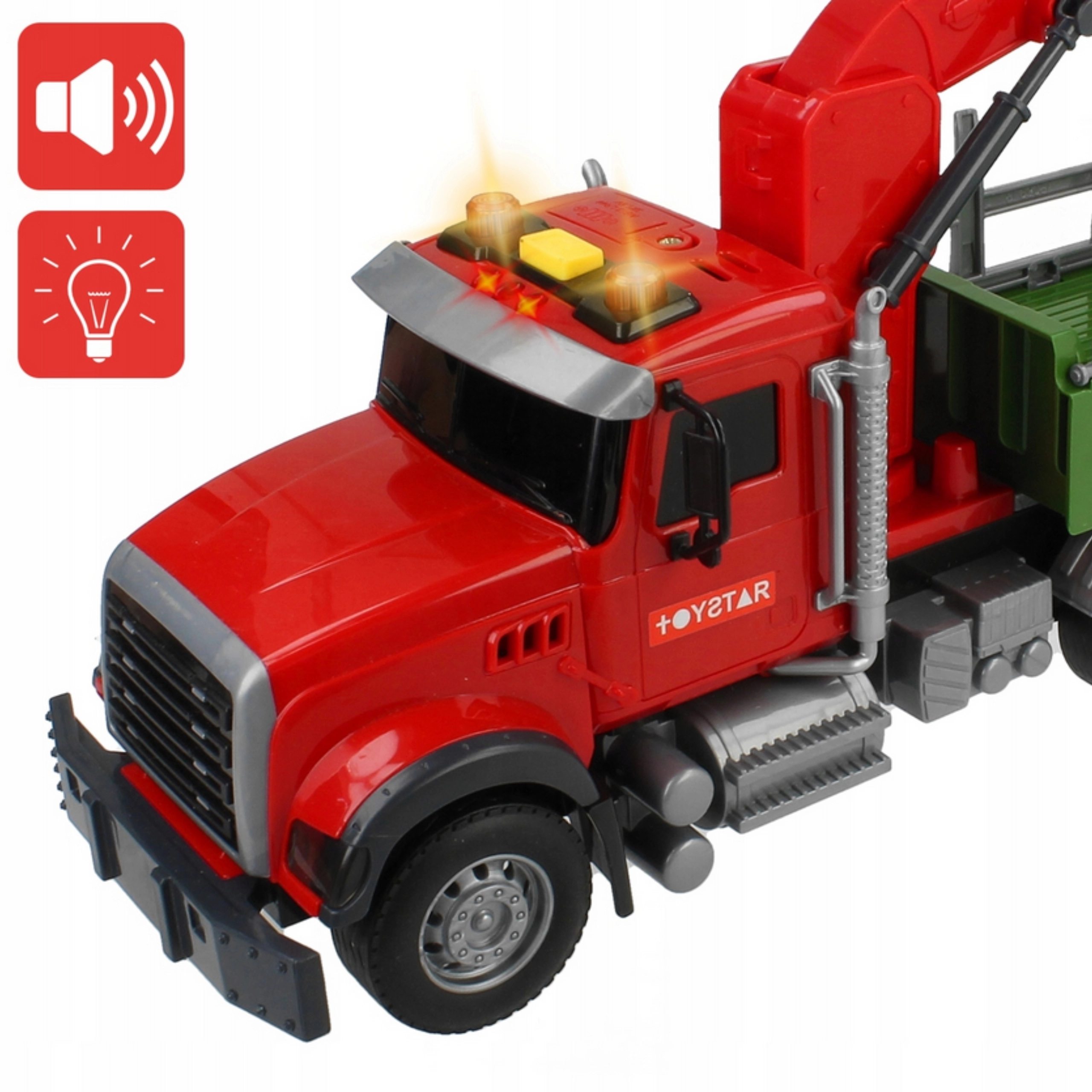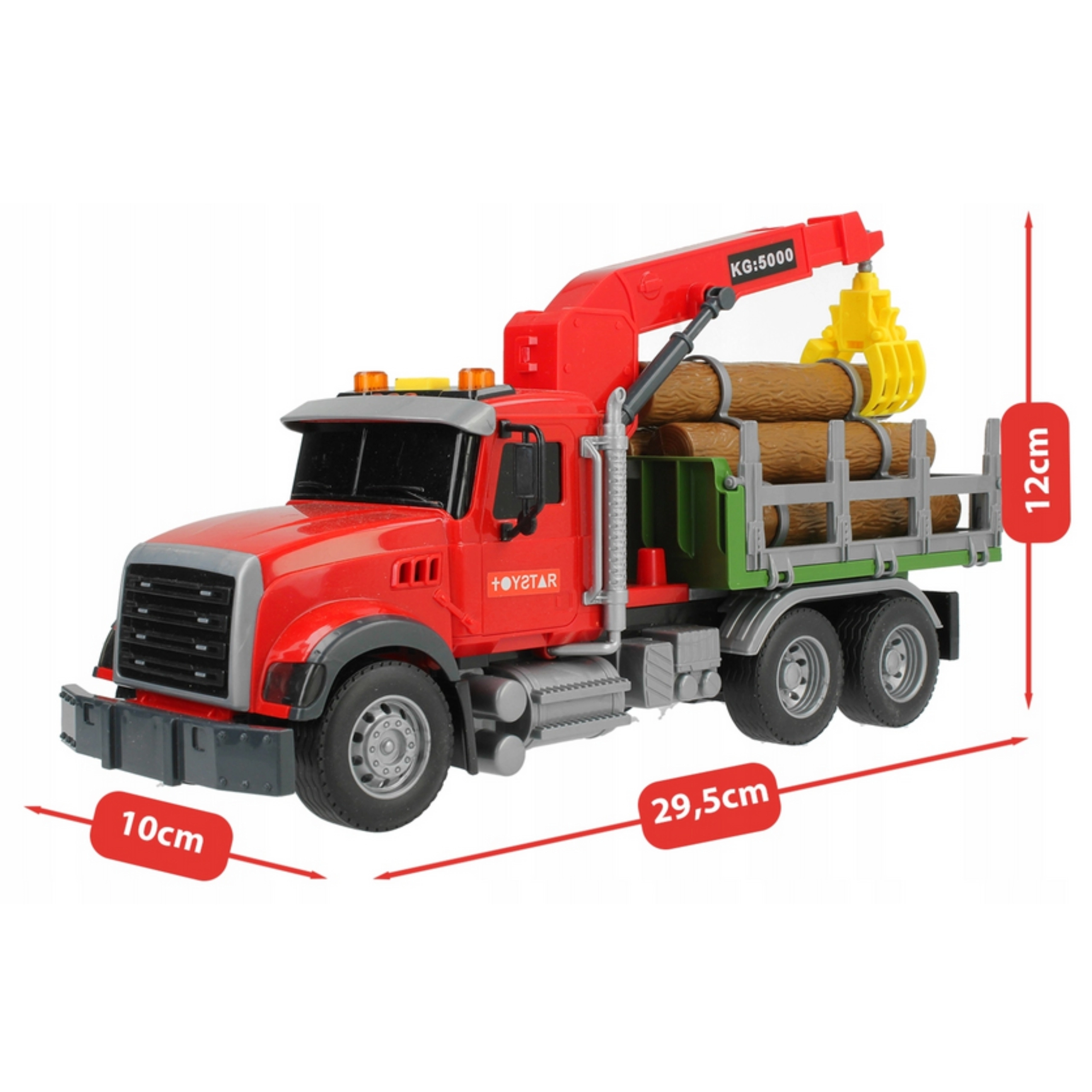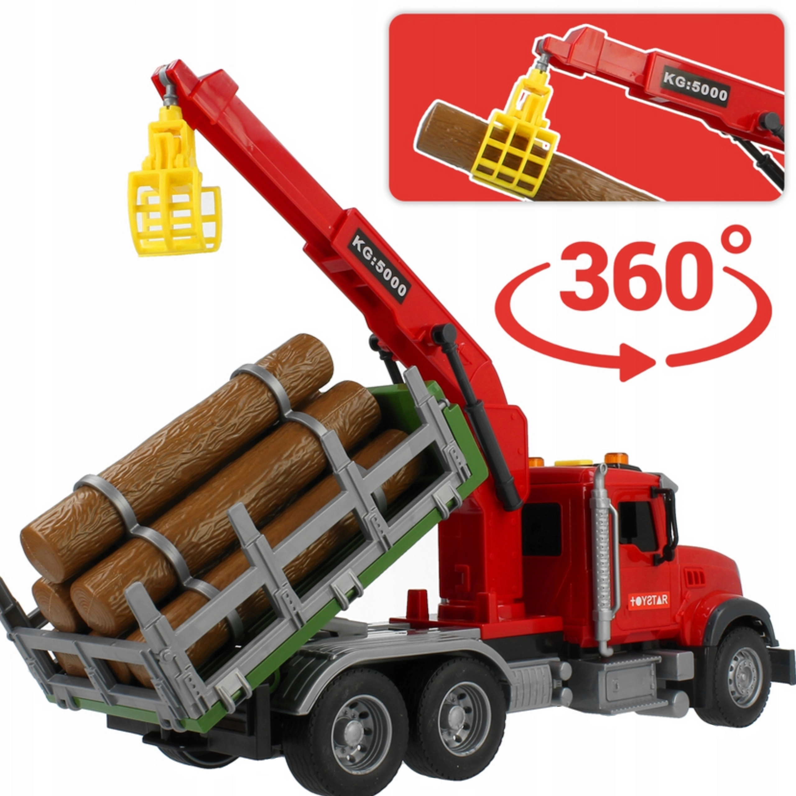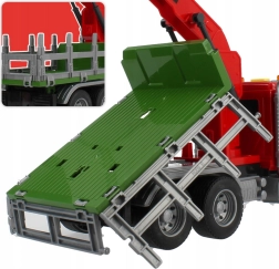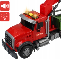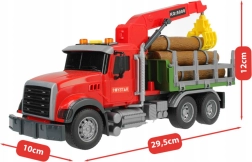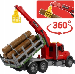 Atklājiet smagās tehnikas pasauli ar WOOPIE kravas auto mērogā 1:14. Bērns var manuāli vadīt rotējošo celtni ar mehānisku satvērēju, pārvietot komplektā iekļautos baļķus un imitēt īstu mežsaimniecības darbu. Spēli pastiprina reālistiskas motora, signāla un celtņa darba skaņas un spilgti LED efekti.