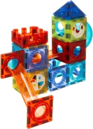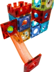 Caurspīdīgie paneļi cieši savienojas, pateicoties spēcīgiem magnētiem, tāpēc torņi, tilti un rampas saglabā formu, un rotaļa norit bez liekiem sabrukumiem.