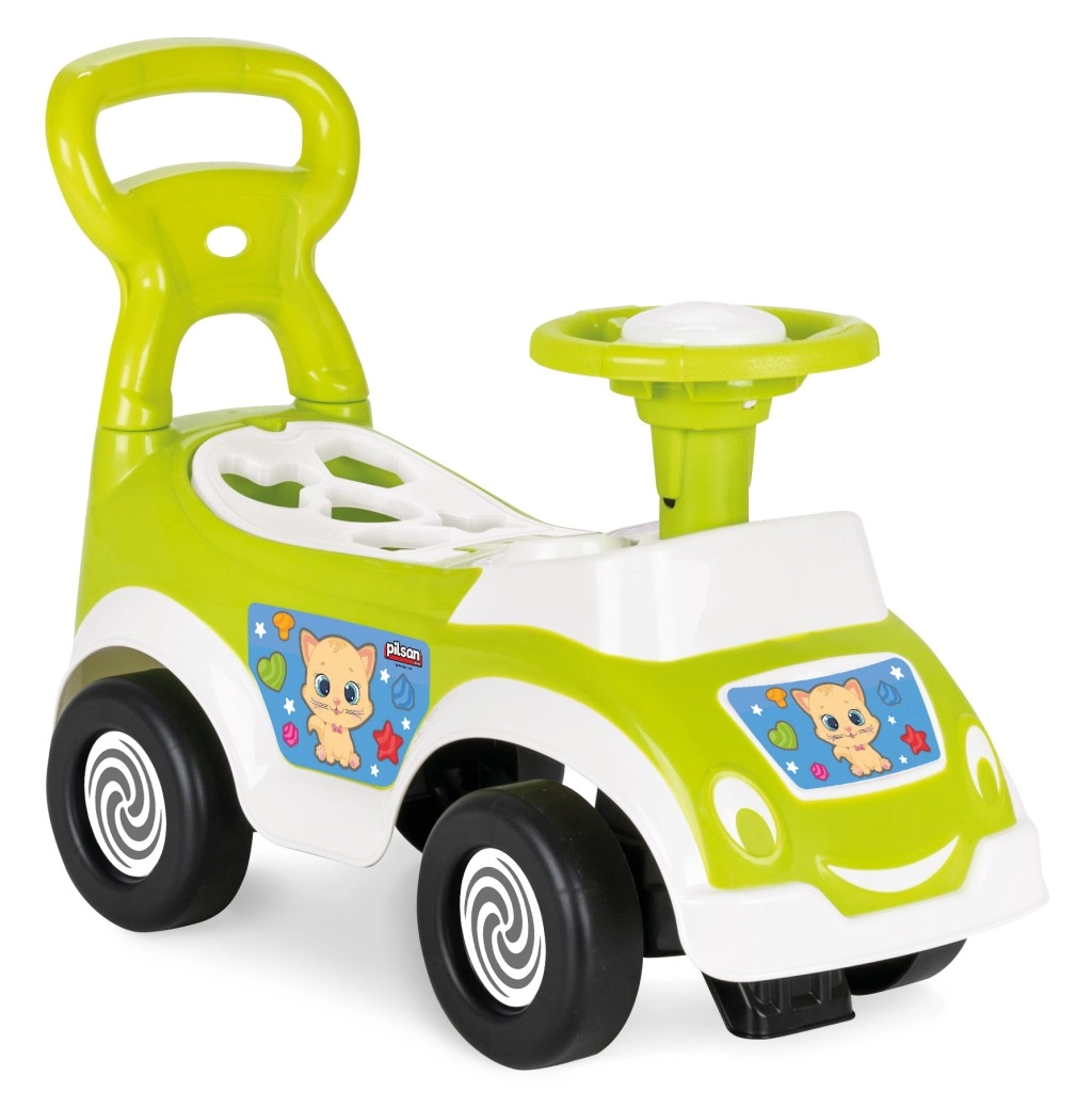 Šī zaļā stumjamā mašīniņa ir paredzēta pašiem mazākajiem no 18 mēnešu vecuma un atbilst stingriem ES drošības standartiem. Ar 20 kg nestspēju un pārdomātu formu to ir viegli vadīt, tā veicina aktīvu kustību un bērna patstāvību.